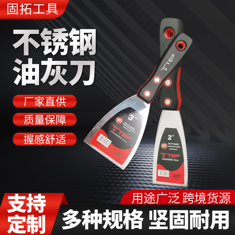 PK2-302新款不锈钢双色油灰刀 双色刮刀泥工灰铲子清洁刮污刀跨境