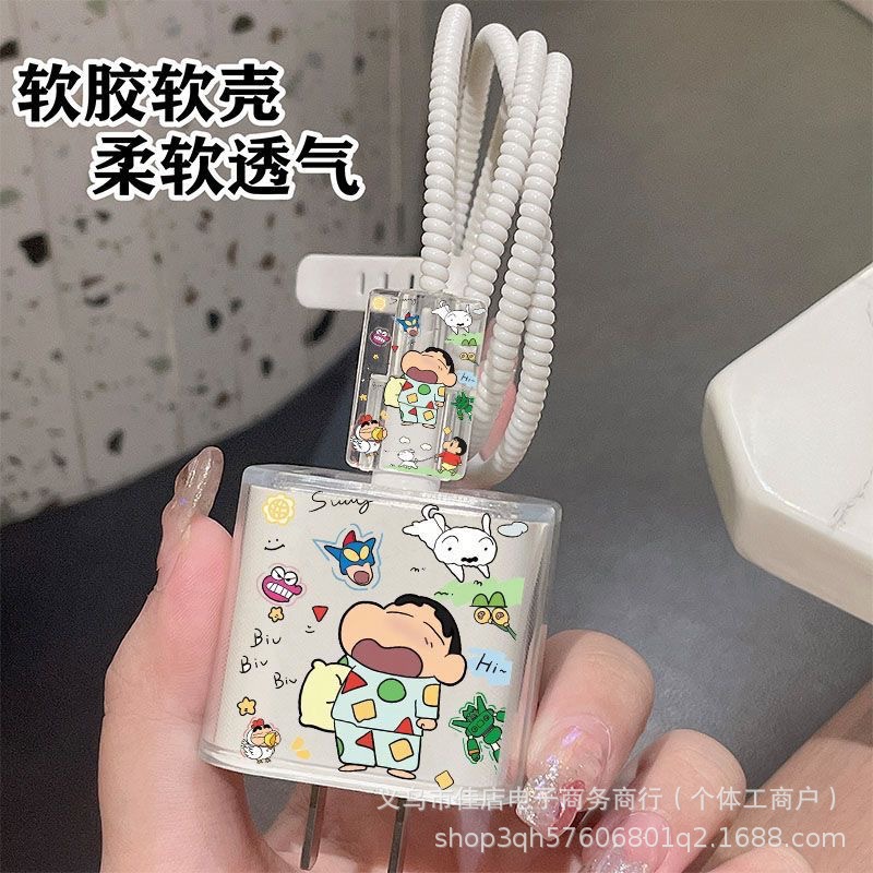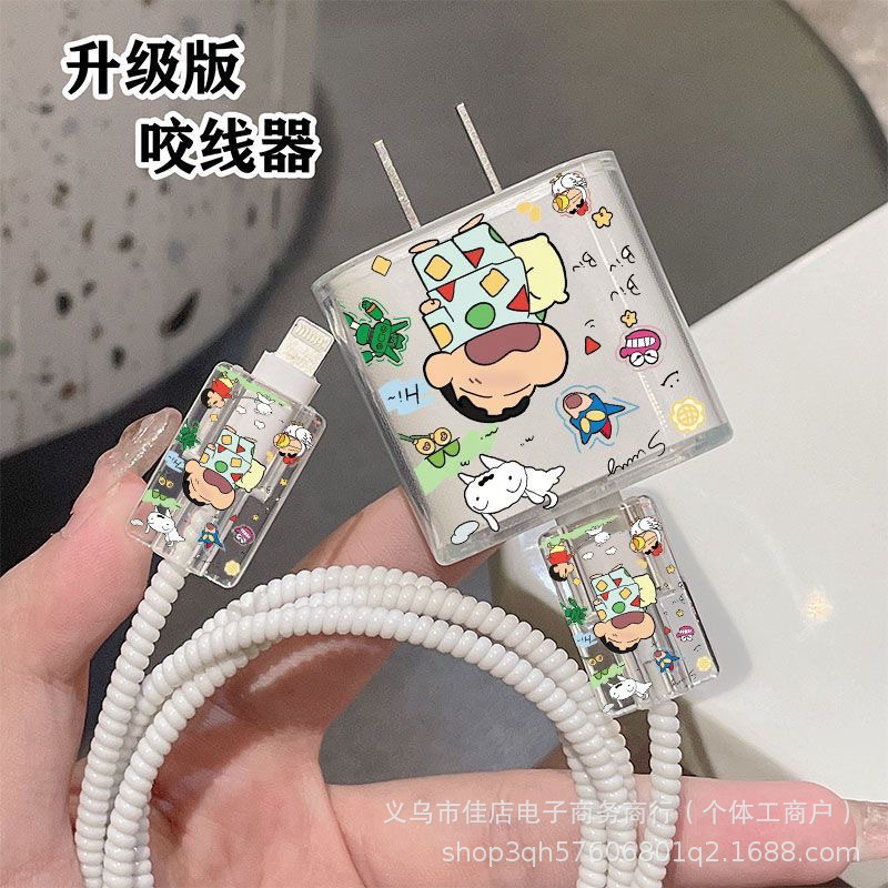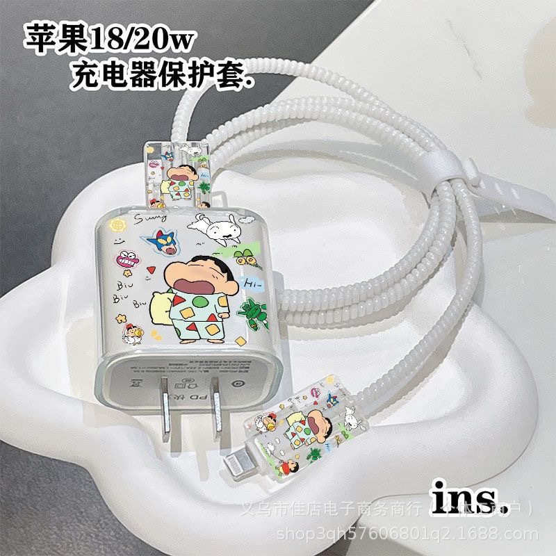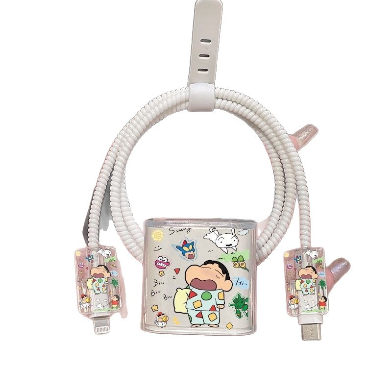 苹果13/14充电器保护套20W蜡笔小新缠绕绳防折断充电线保护套