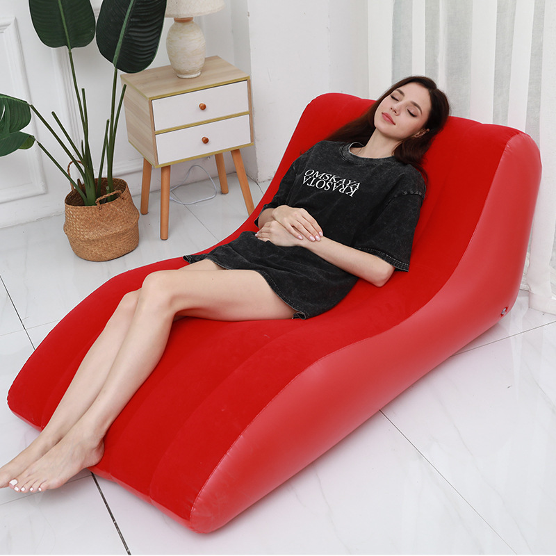 发现新款沙发现货沙发可折叠躺椅S植绒单人充气充气懒人pvc波浪沙
