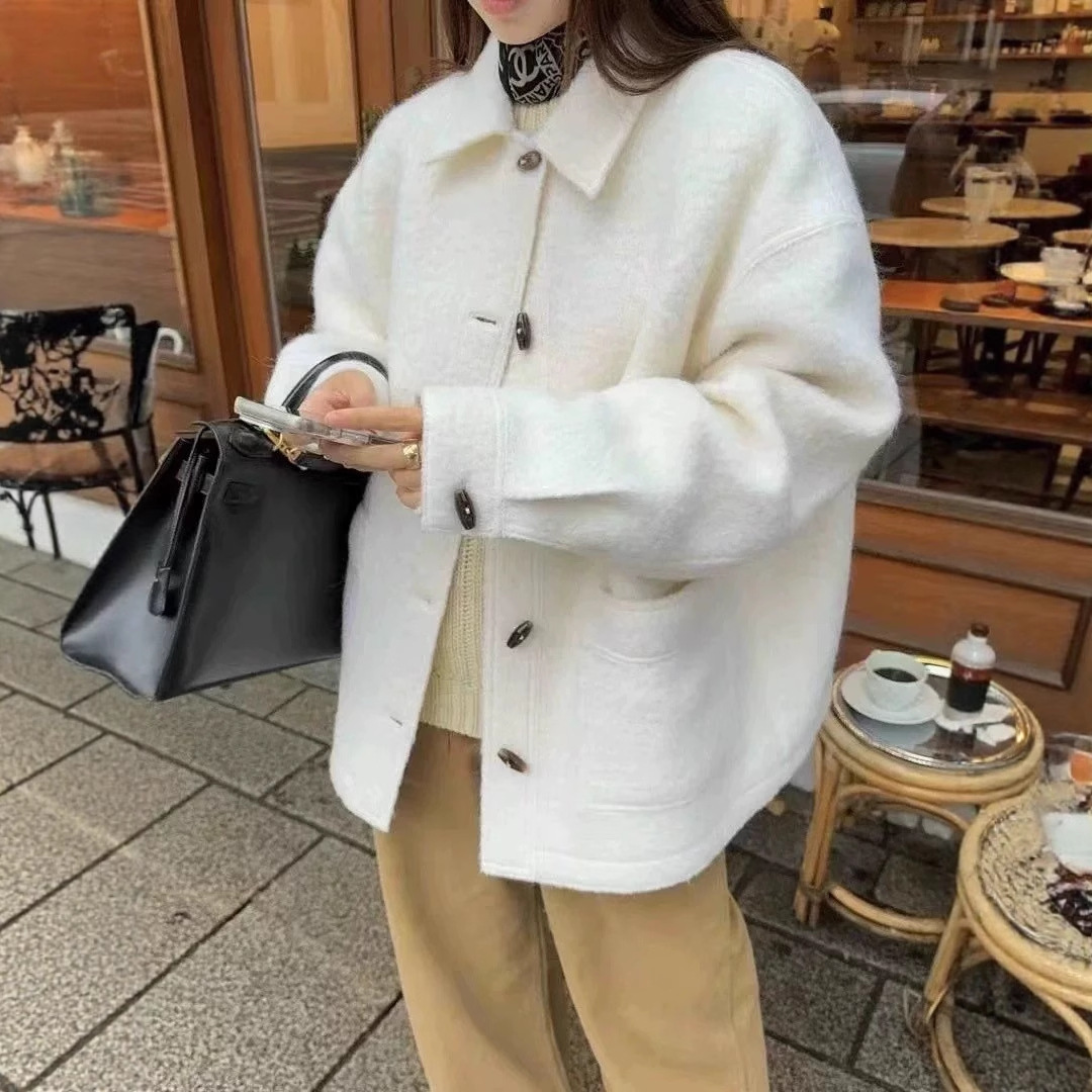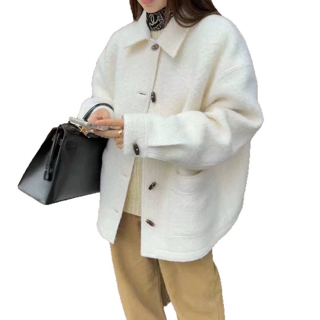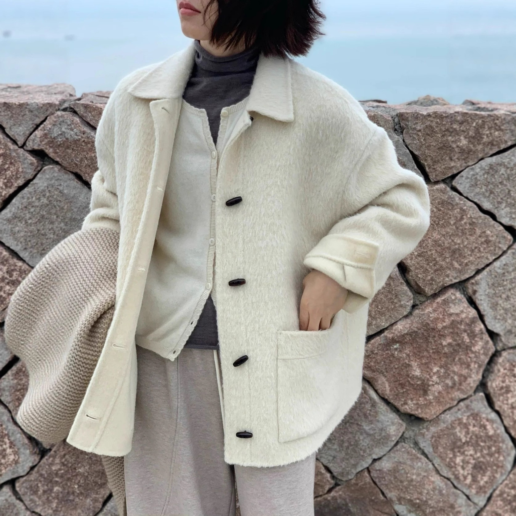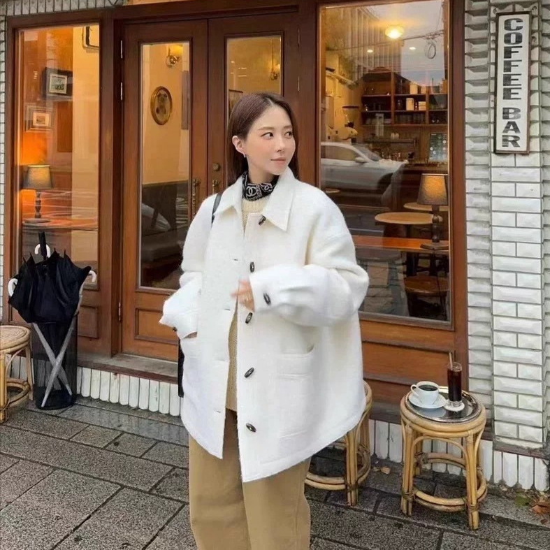 the able韩国东大门代购羊绒大衣秋冬圈圈毛翻领羊毛大衣外套女