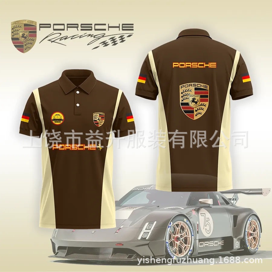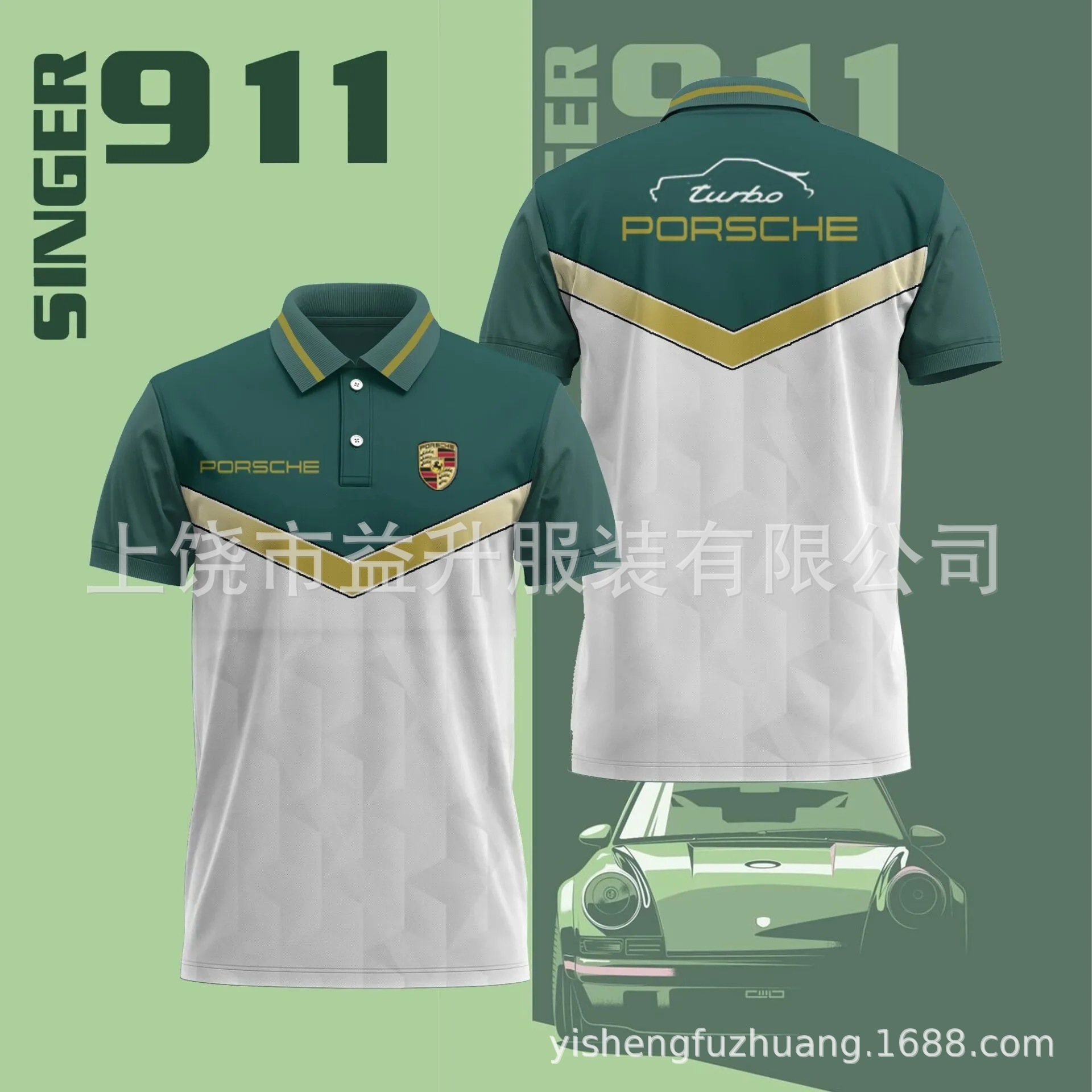 秋季新品男装polo衫宽松短袖3D字母印花车标纽扣短袖翻领上衣跨境