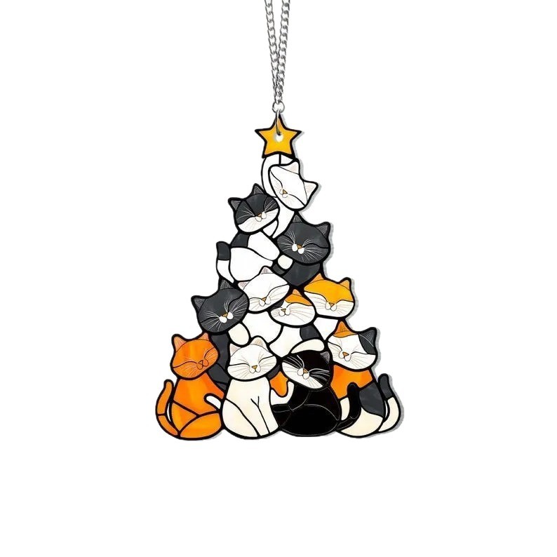 跨境新品Cat Christmas Tree Suncatcher Ornament猫圣诞树装饰品