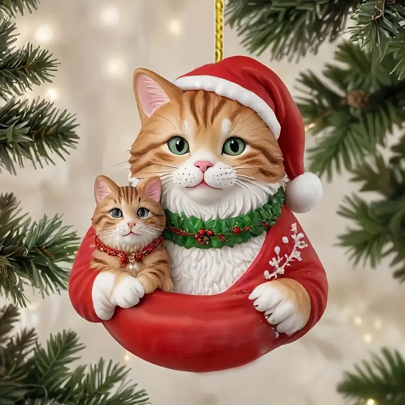 跨境新款亚克力平面圣诞猫咪六件套汽车装饰挂件圣诞树圣诞节装饰