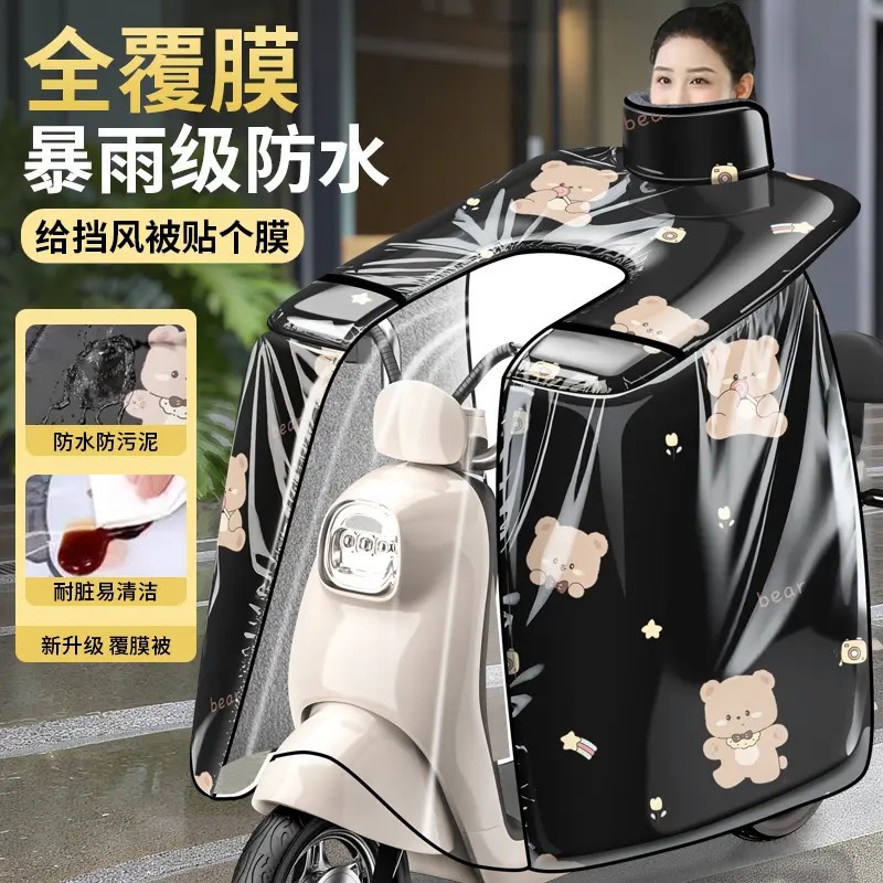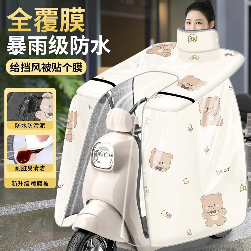 防水覆膜秋冬挡风被斗篷款电动车摩托车加厚防风被耐脏防水