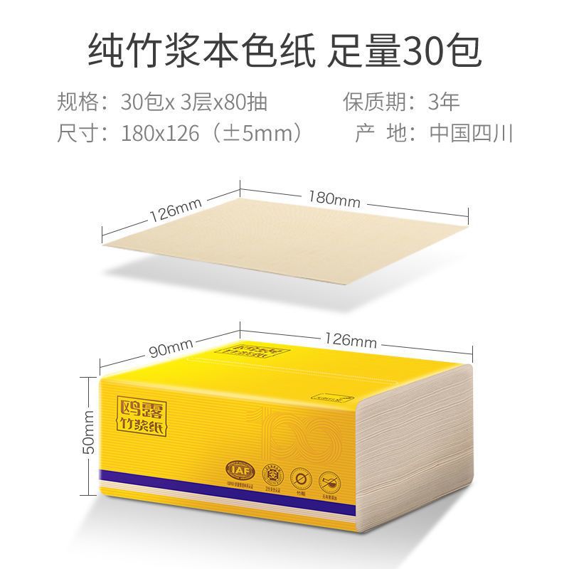 鸥露抽纸30包竹浆本色纸巾整箱实惠批发餐巾纸面巾纸6包车载抽纸