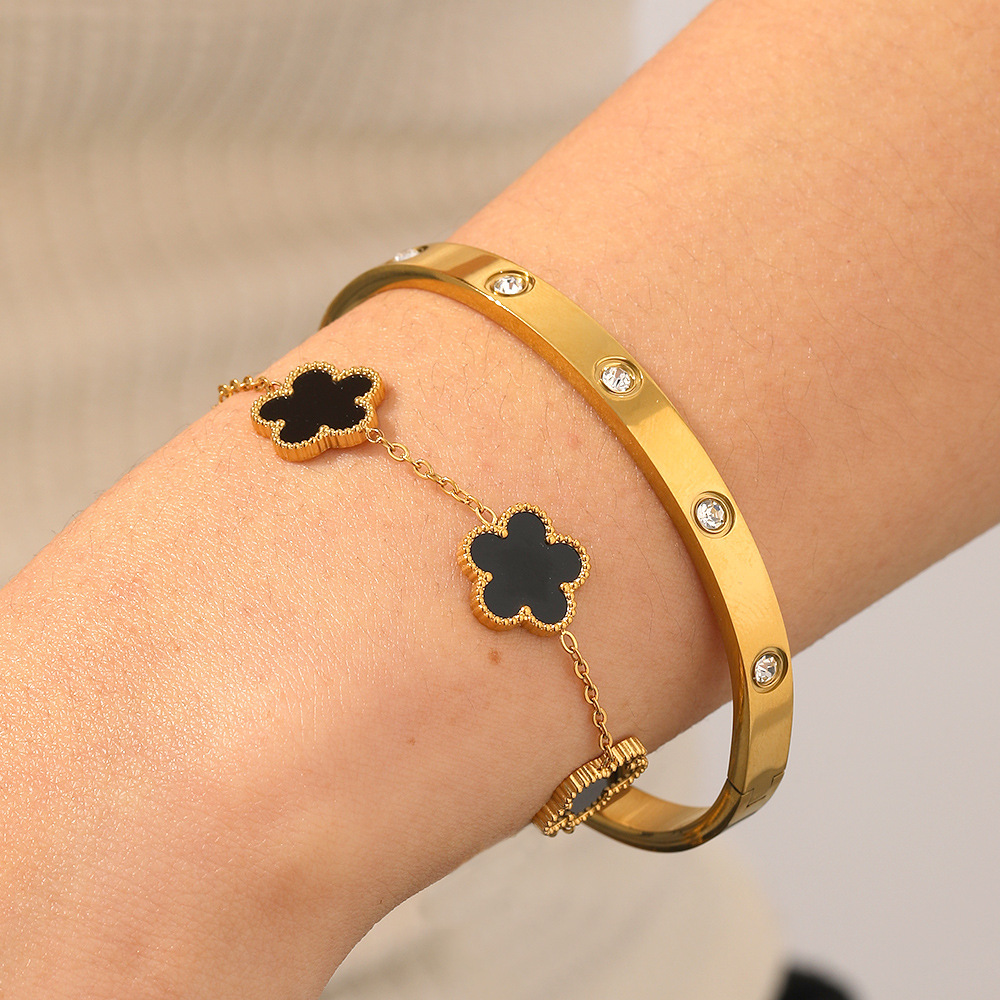 | 颜色 | 全钻手镯+黑贝五叶花手链R603+A304 | 颜色 | 全钻手镯+三颗黑石手链R603+A618 |