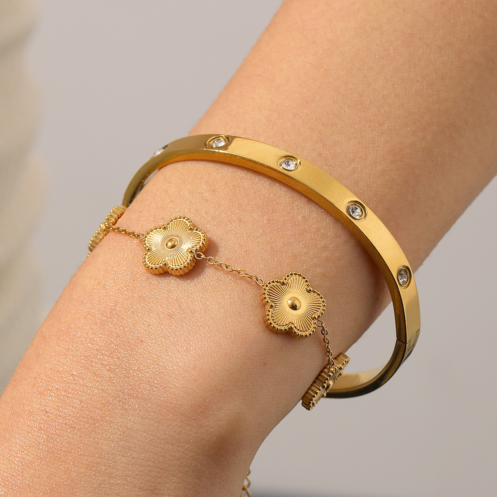 | 颜色 | 全钻手镯+金色五叶花手链R603+A203 | 颜色 | 全钻手镯+光面扭纹手镯R603+S506 |