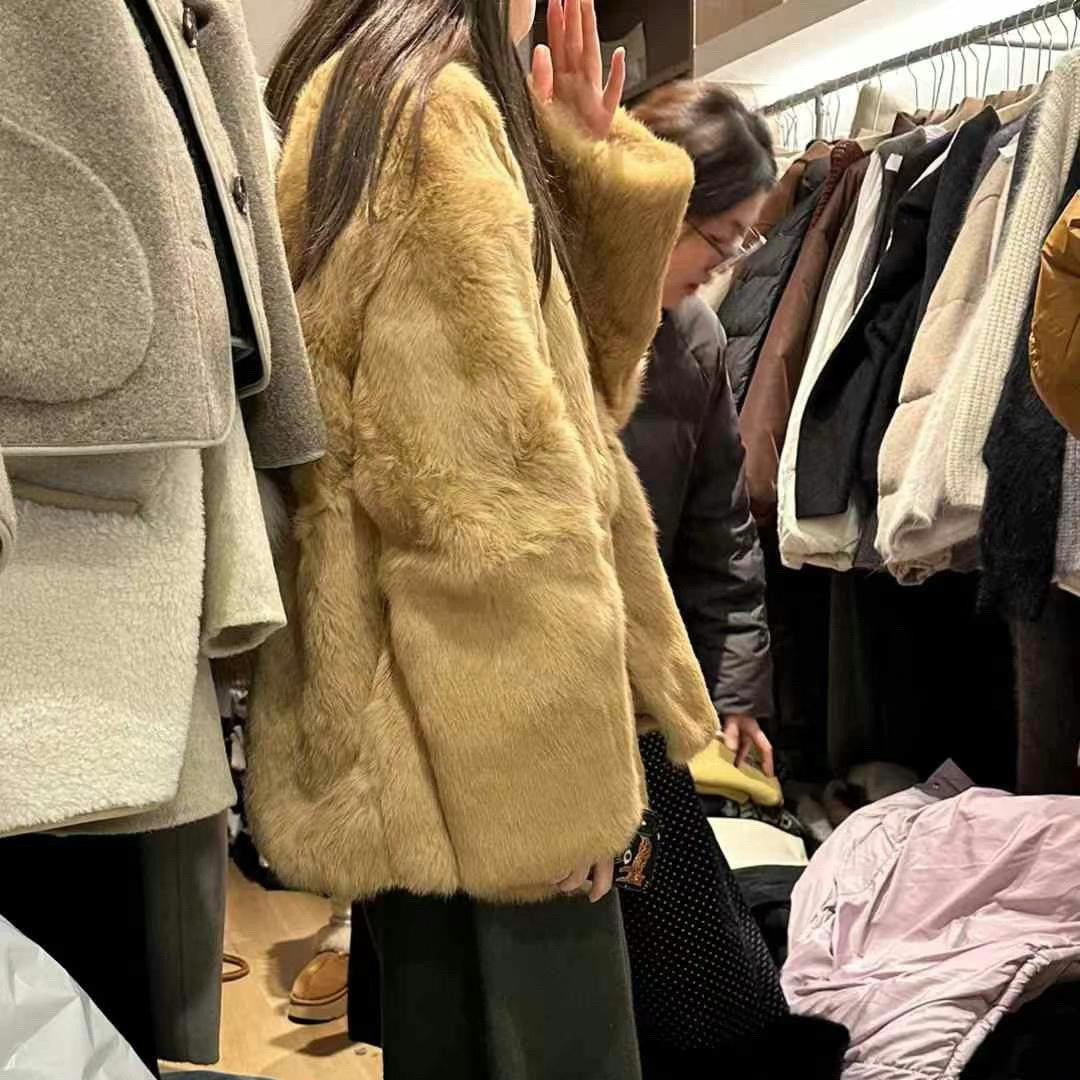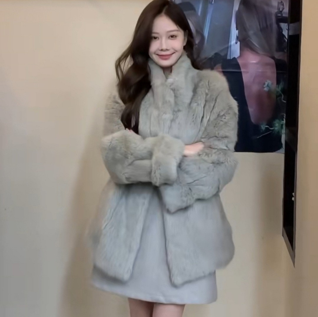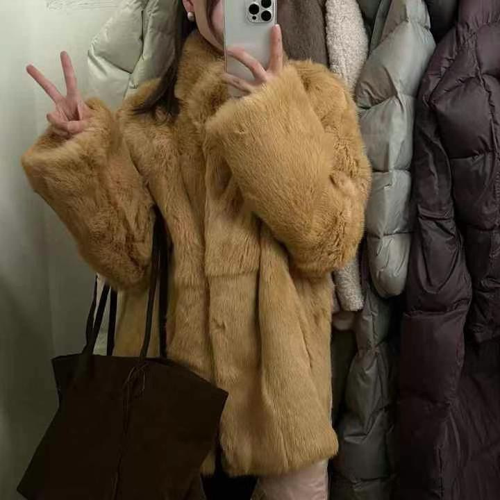 韩国东大门2025新款兔毛皮草外套女宽松显瘦立领加厚保暖毛毛外套