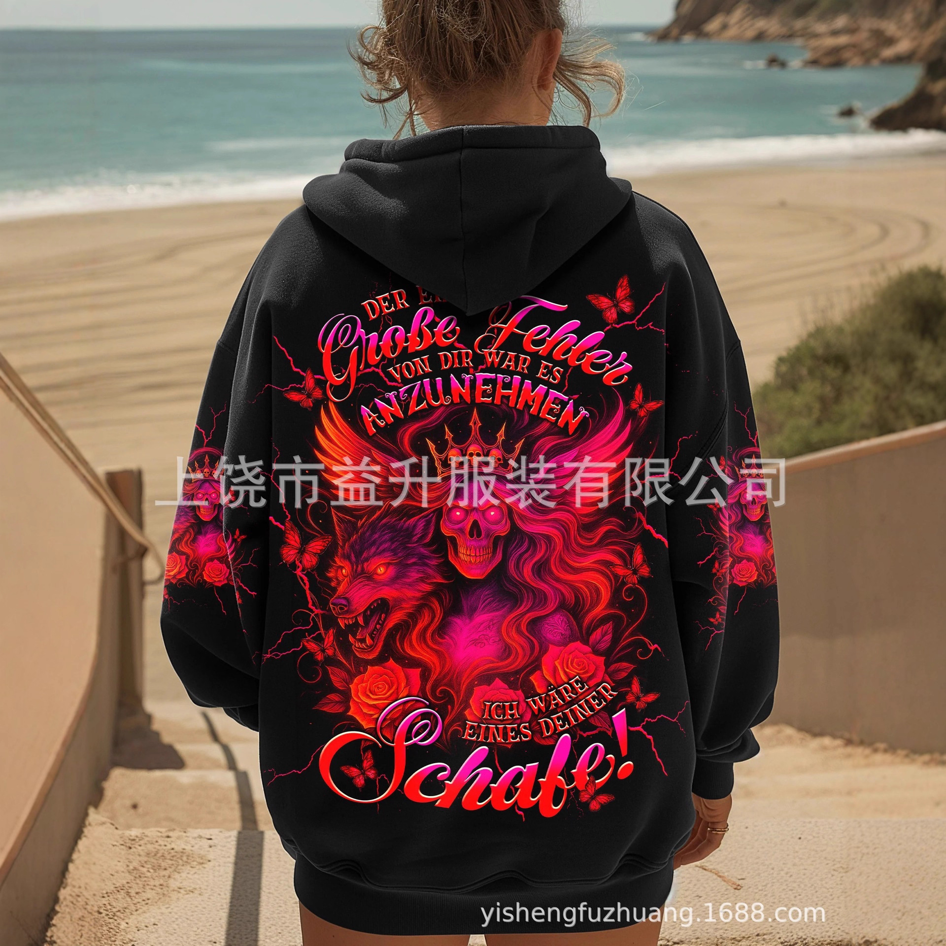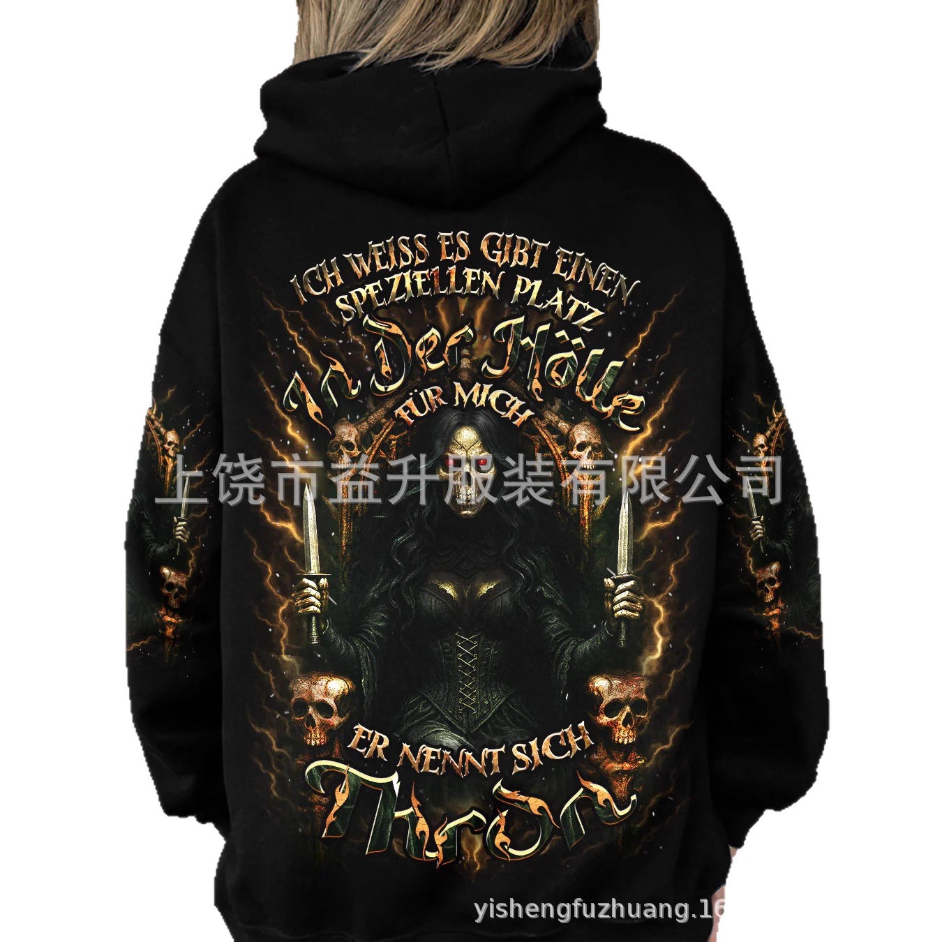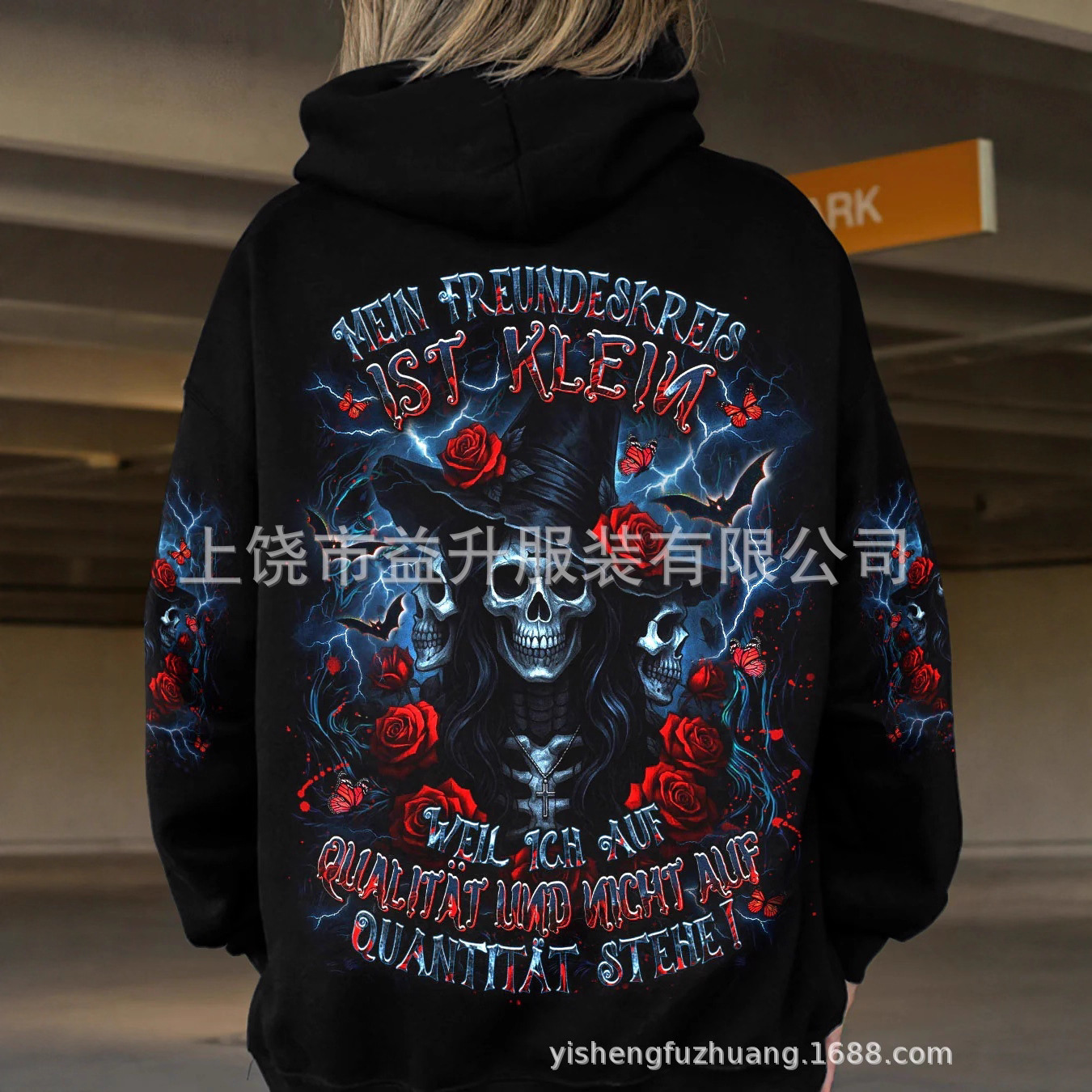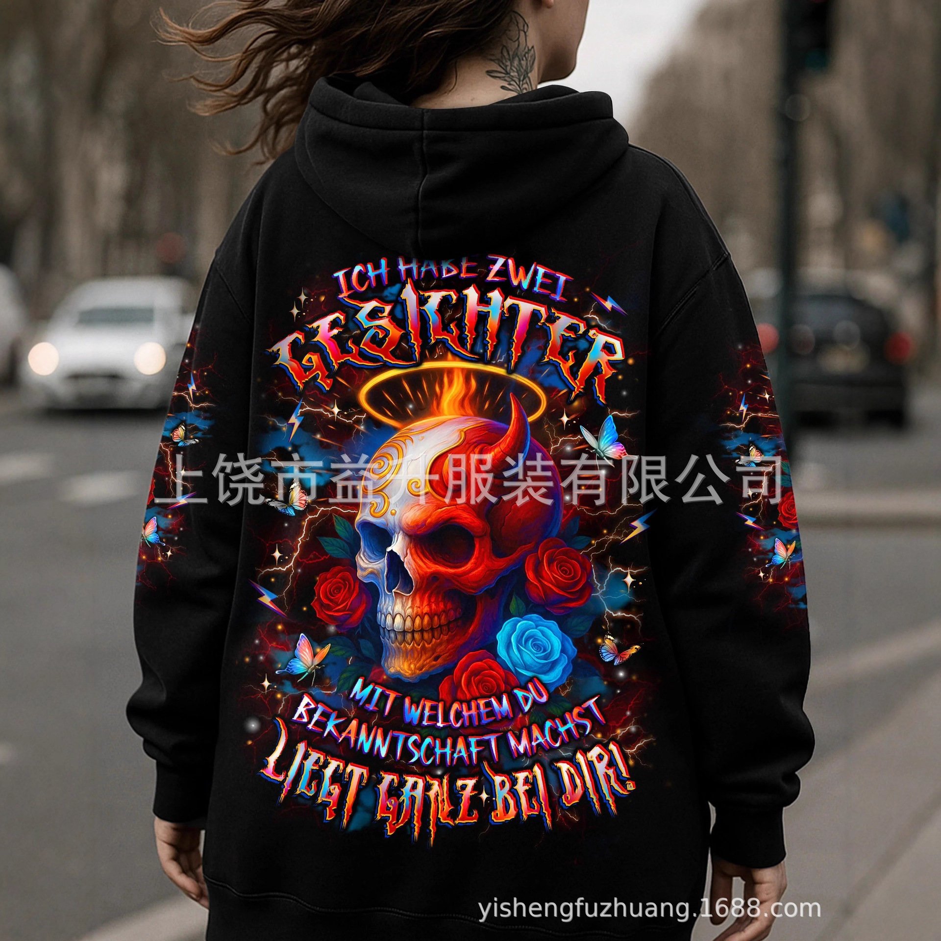 秋冬新品欧美时尚休闲骷髅3D印花服装 街头潮牌爆款户外运动上衣