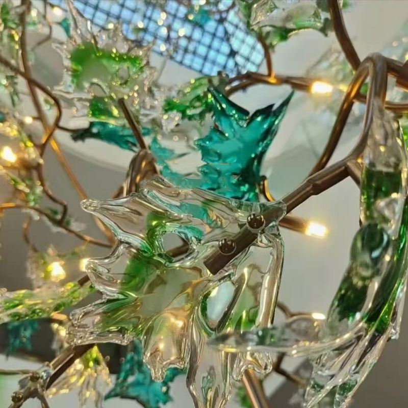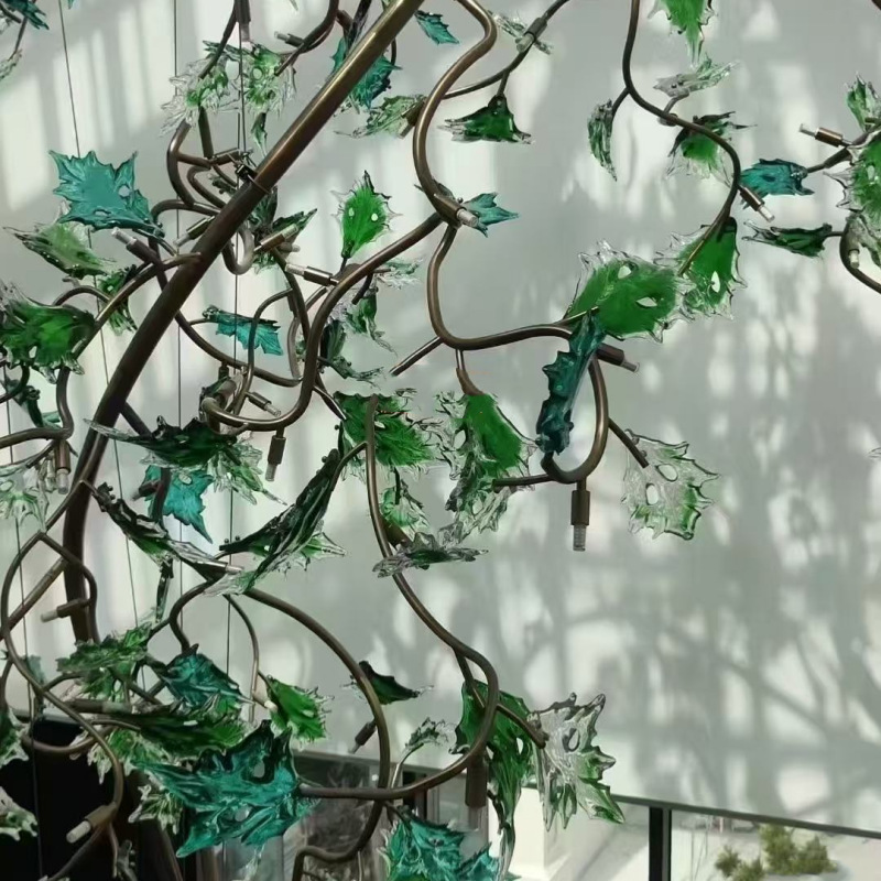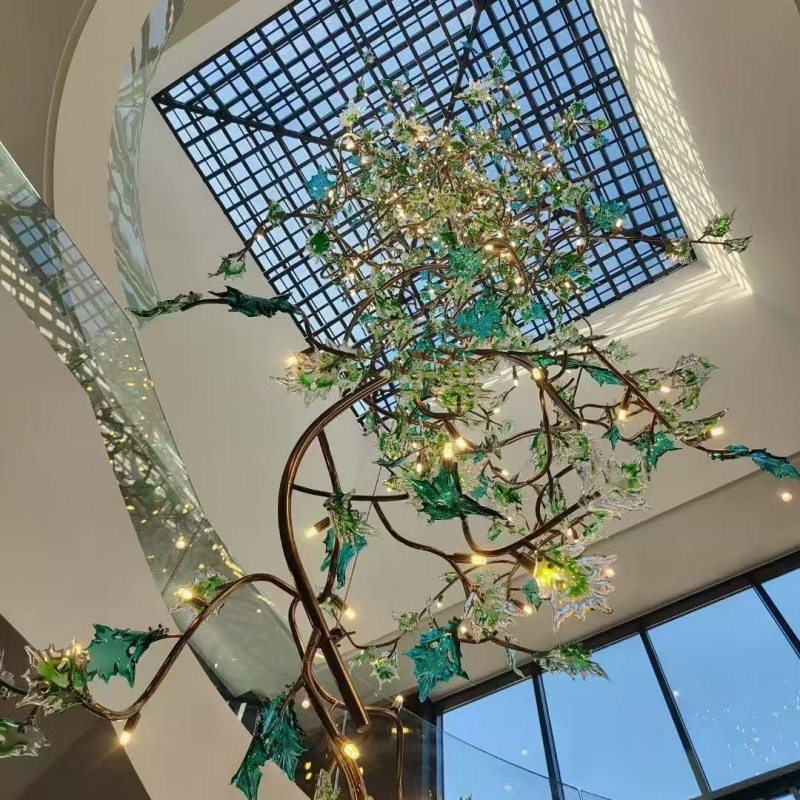 酒店大堂非标玻璃吊灯复式楼轻奢别墅大厅装饰树枝叶片灯工程灯具
