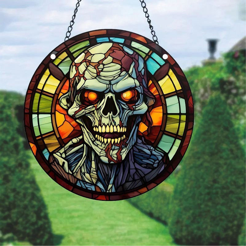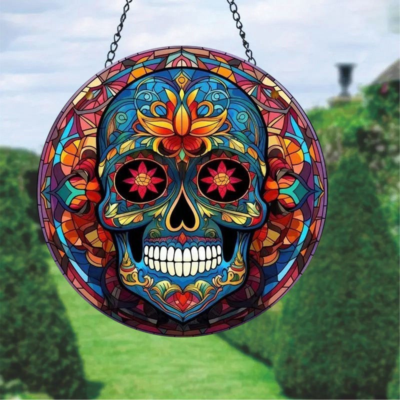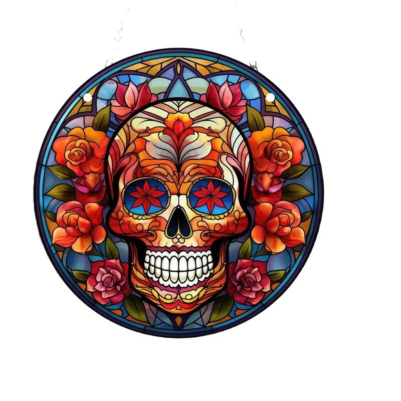 temu新款复活节亚克力平面挂件装饰门前挂牌彩色骷髅头装饰挂批发