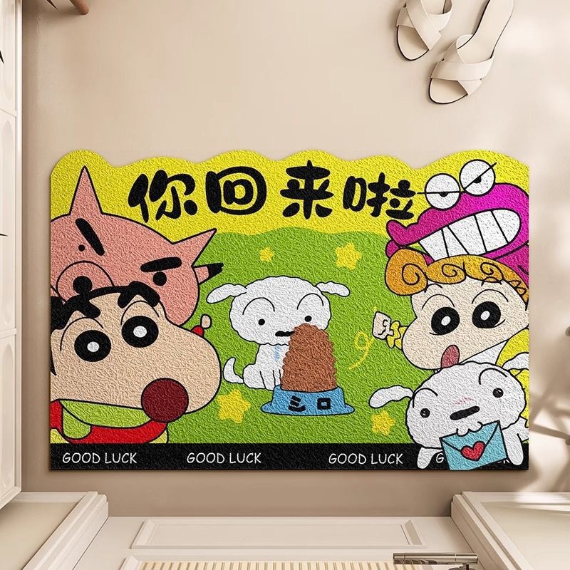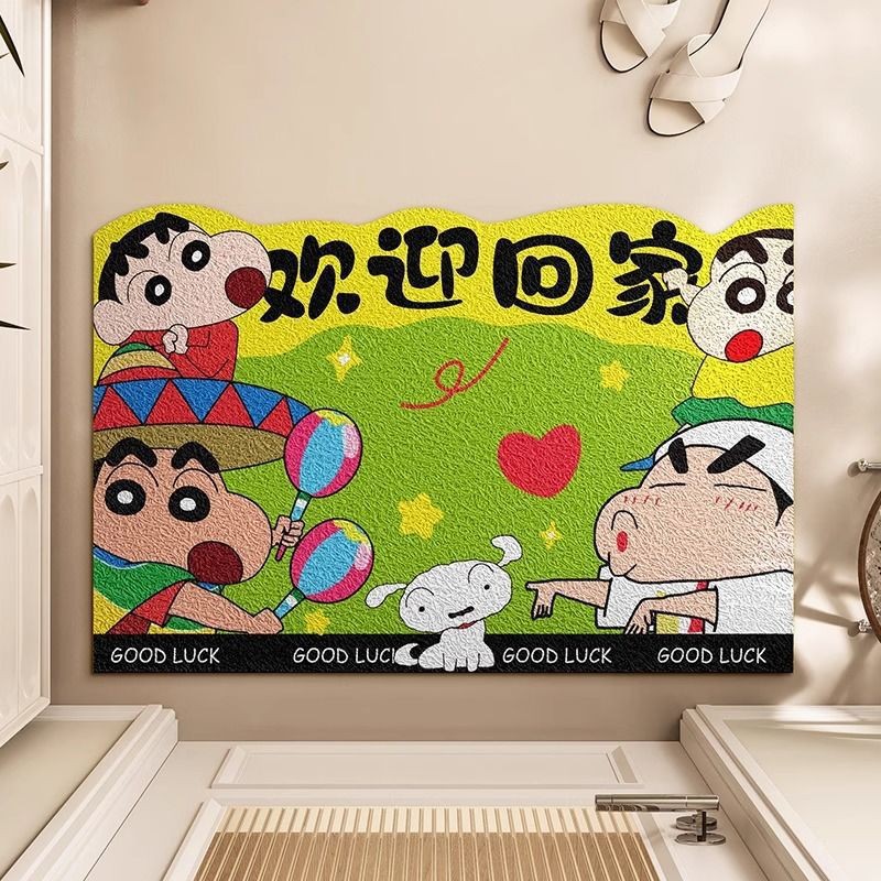 蜡笔小新入户门地垫门口玄关家用地毯防滑蹭土刮沙可裁剪丝圈脚垫