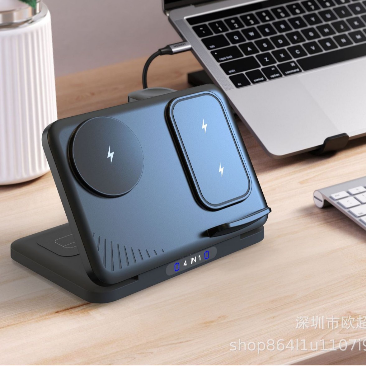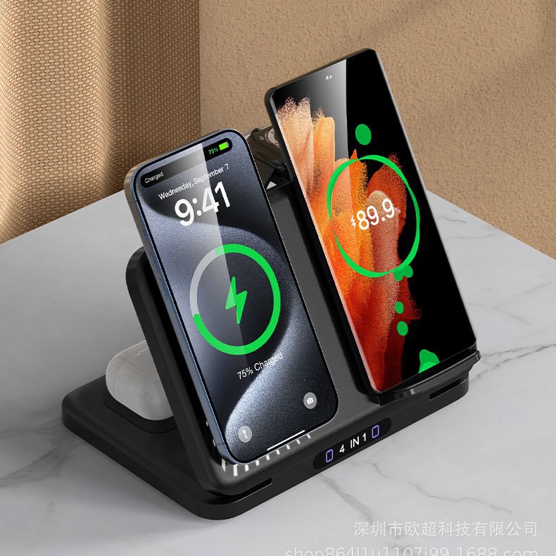 4 IN 1双手机15W快速无线充电器折叠支架适用三星苹果手机 手表