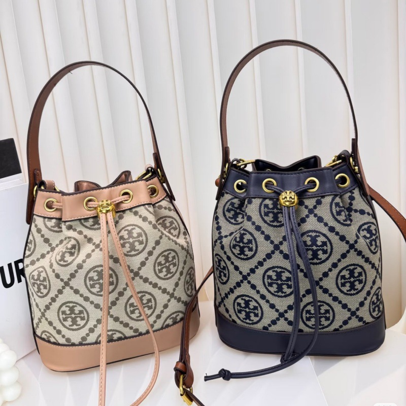 TB新款老花满印帆布抽绳水桶包大容量时尚百搭单肩斜挎手提女包潮