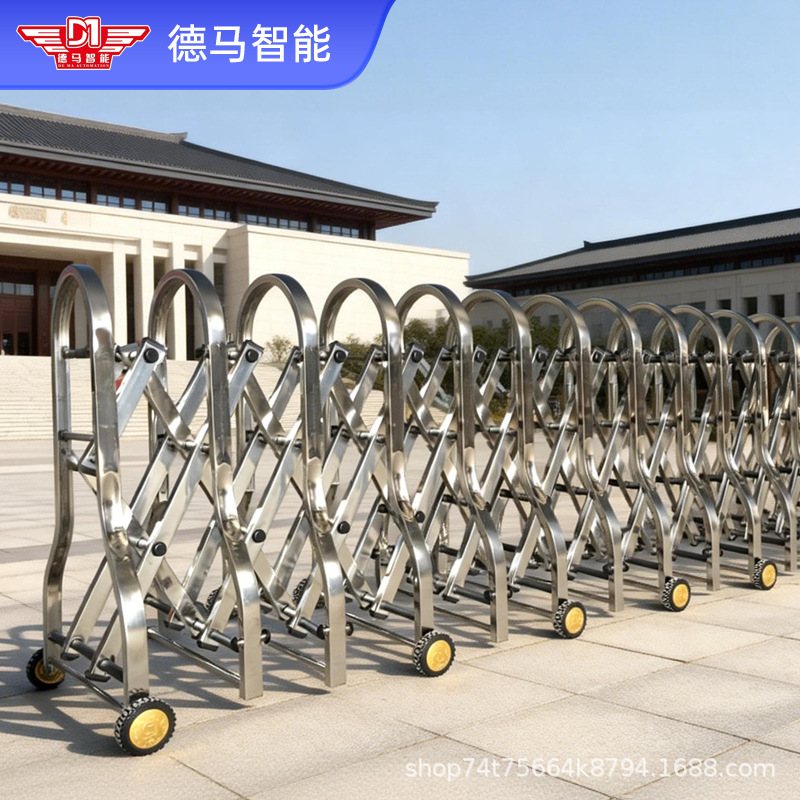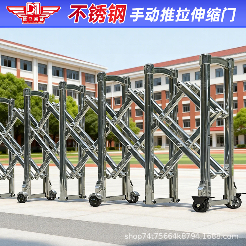 手动推拉伸缩门路障移动门隔离推拉折叠护栏高速不锈钢围栏防盗门