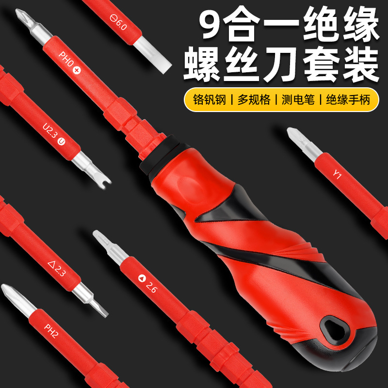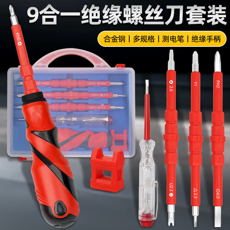 9合一绝缘螺丝刀套装十字一字双头耐高压电工用手动起子电笔组合