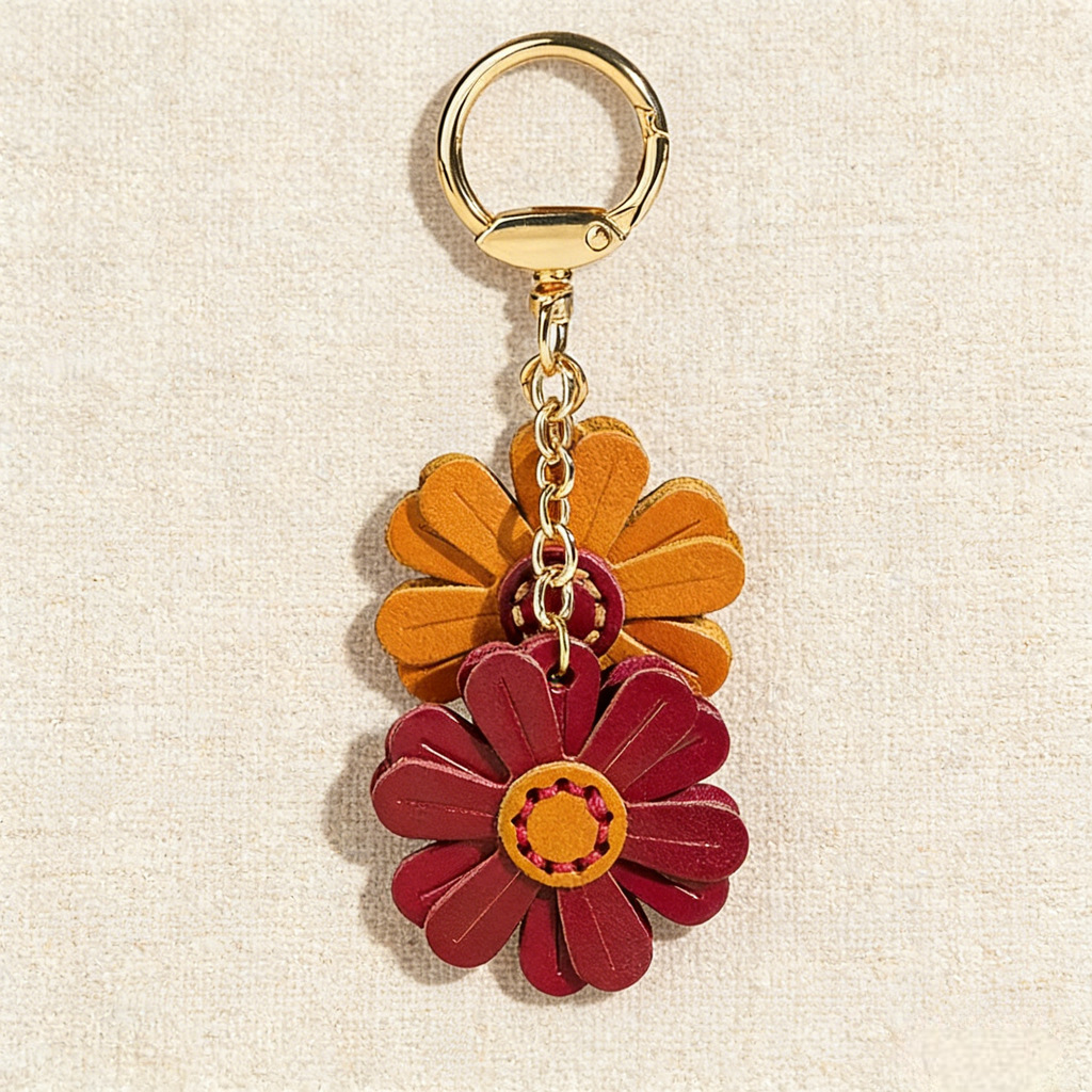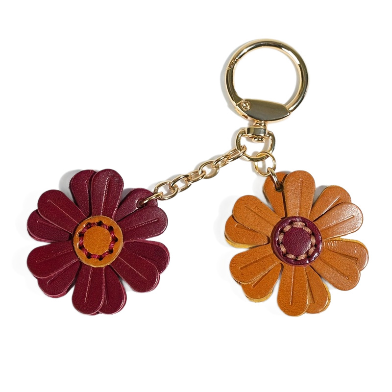 跨境新款现创意小雏菊钥匙扣女生可爱花朵造型pu皮革挂件厂家现货