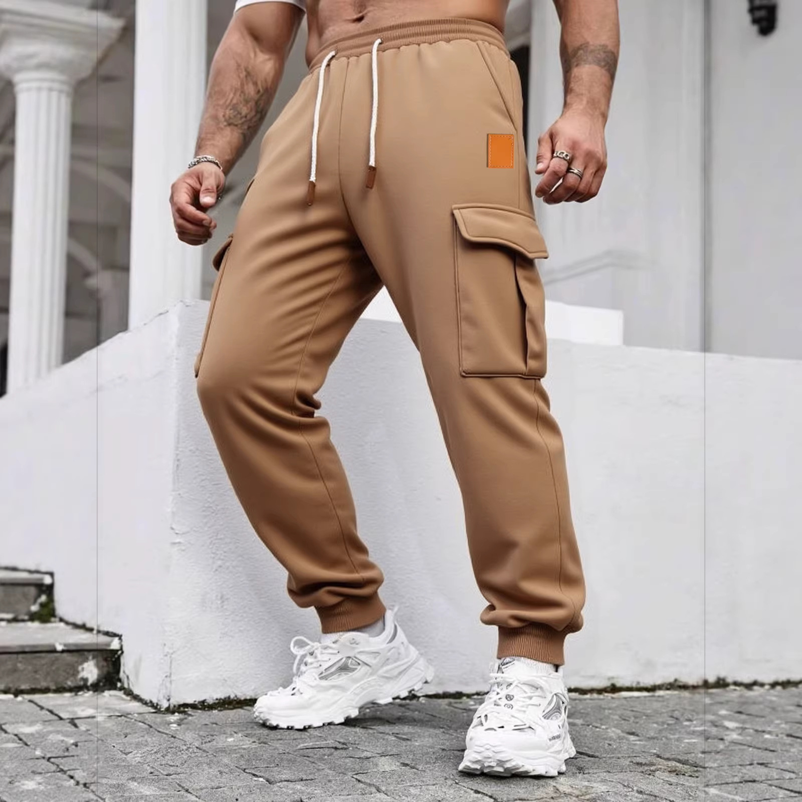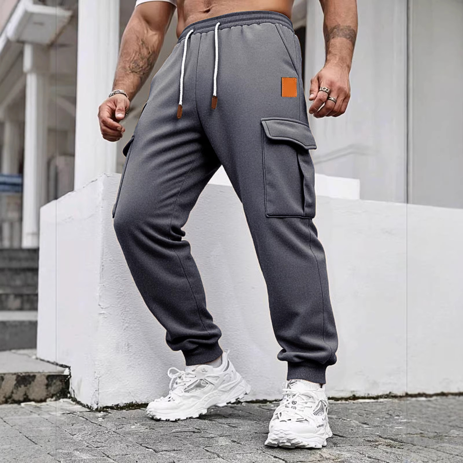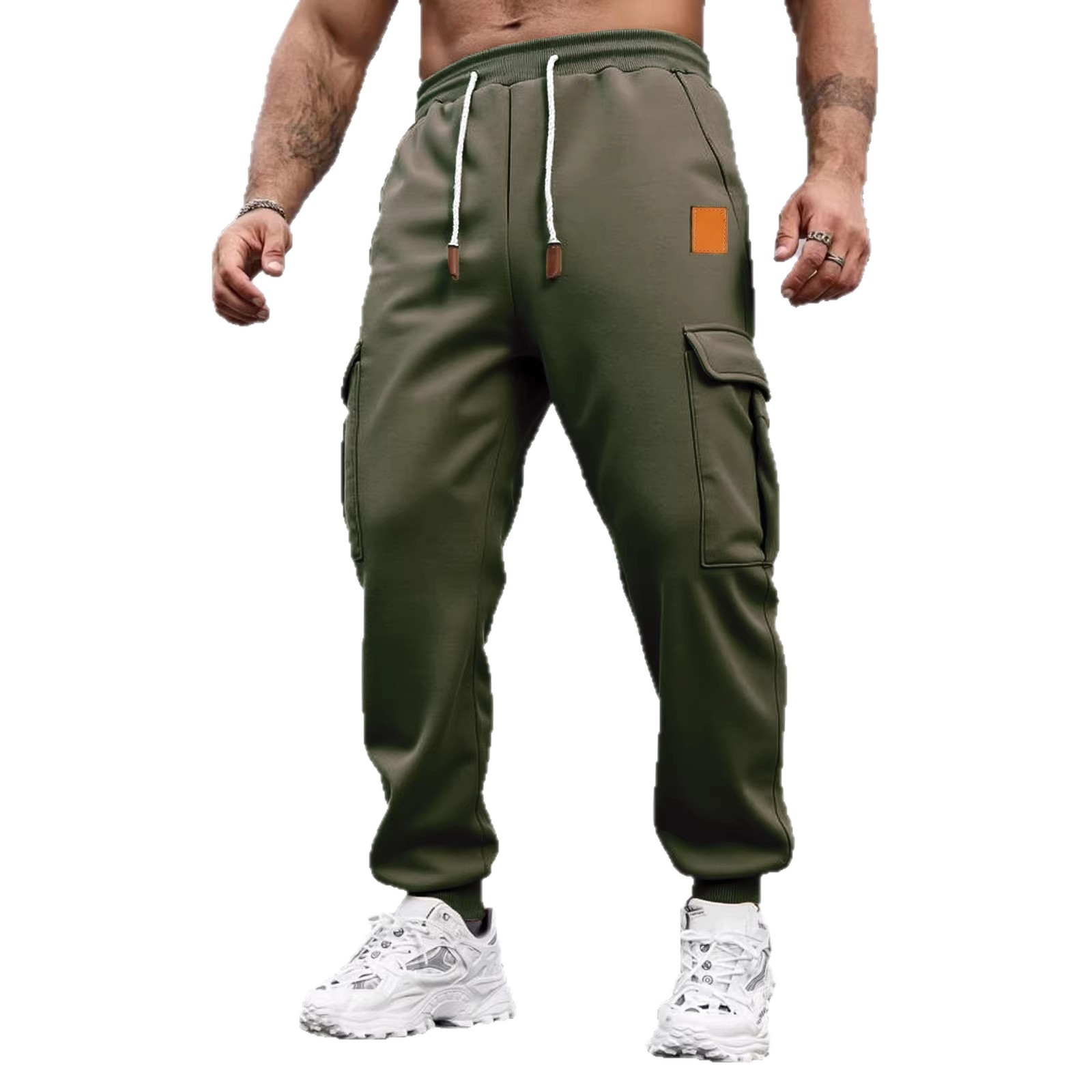 跨境热销新款秋冬训练工装休闲裤加绒长裤时尚多口袋运动卫裤男