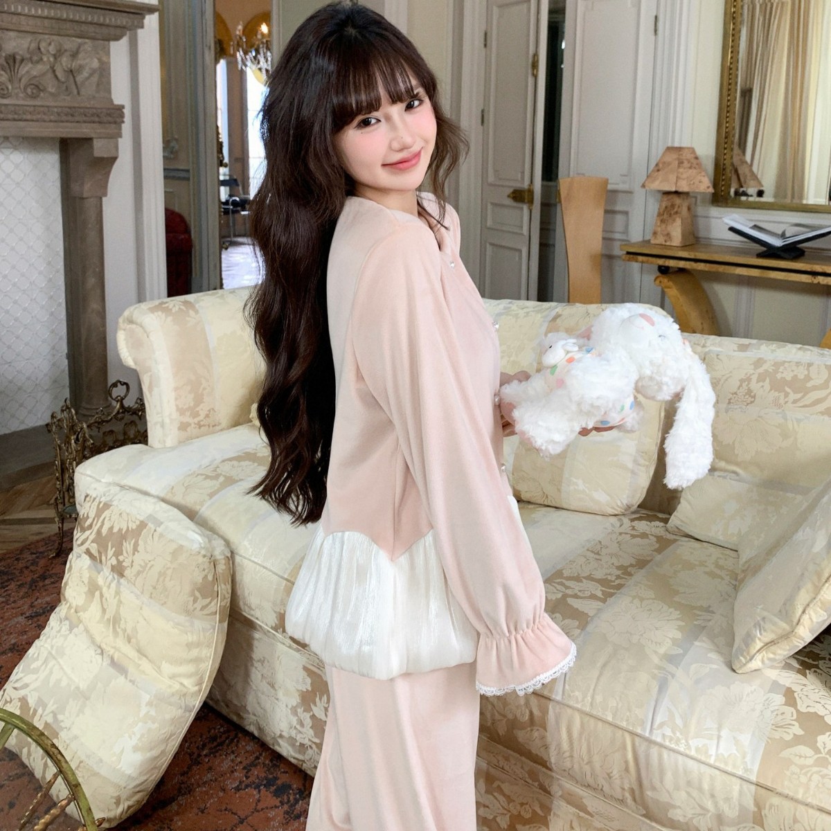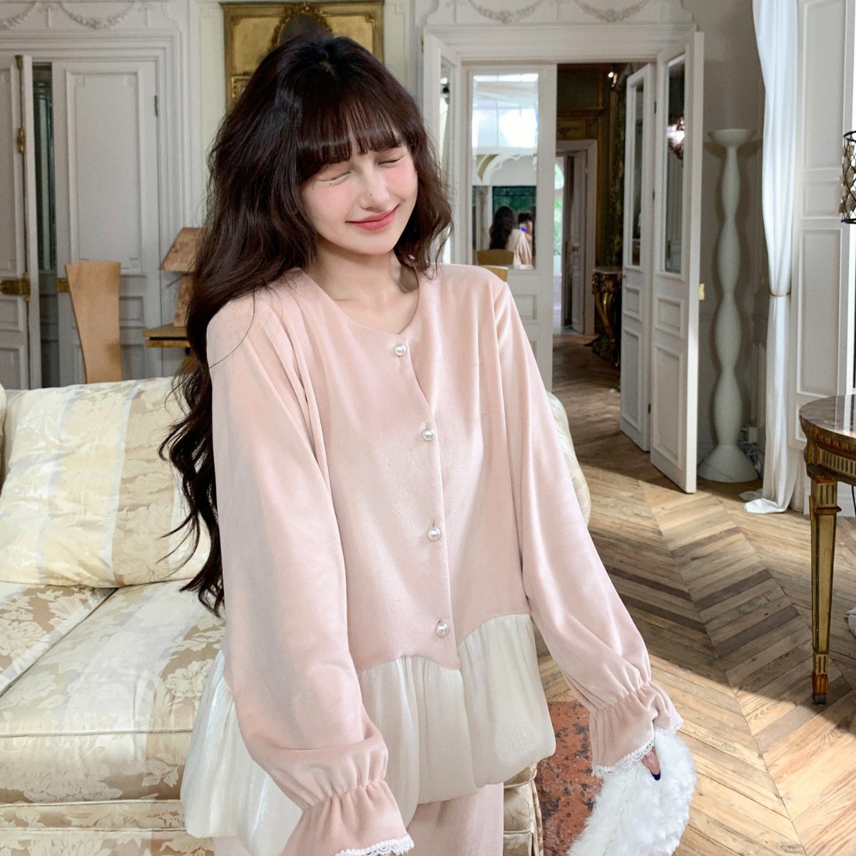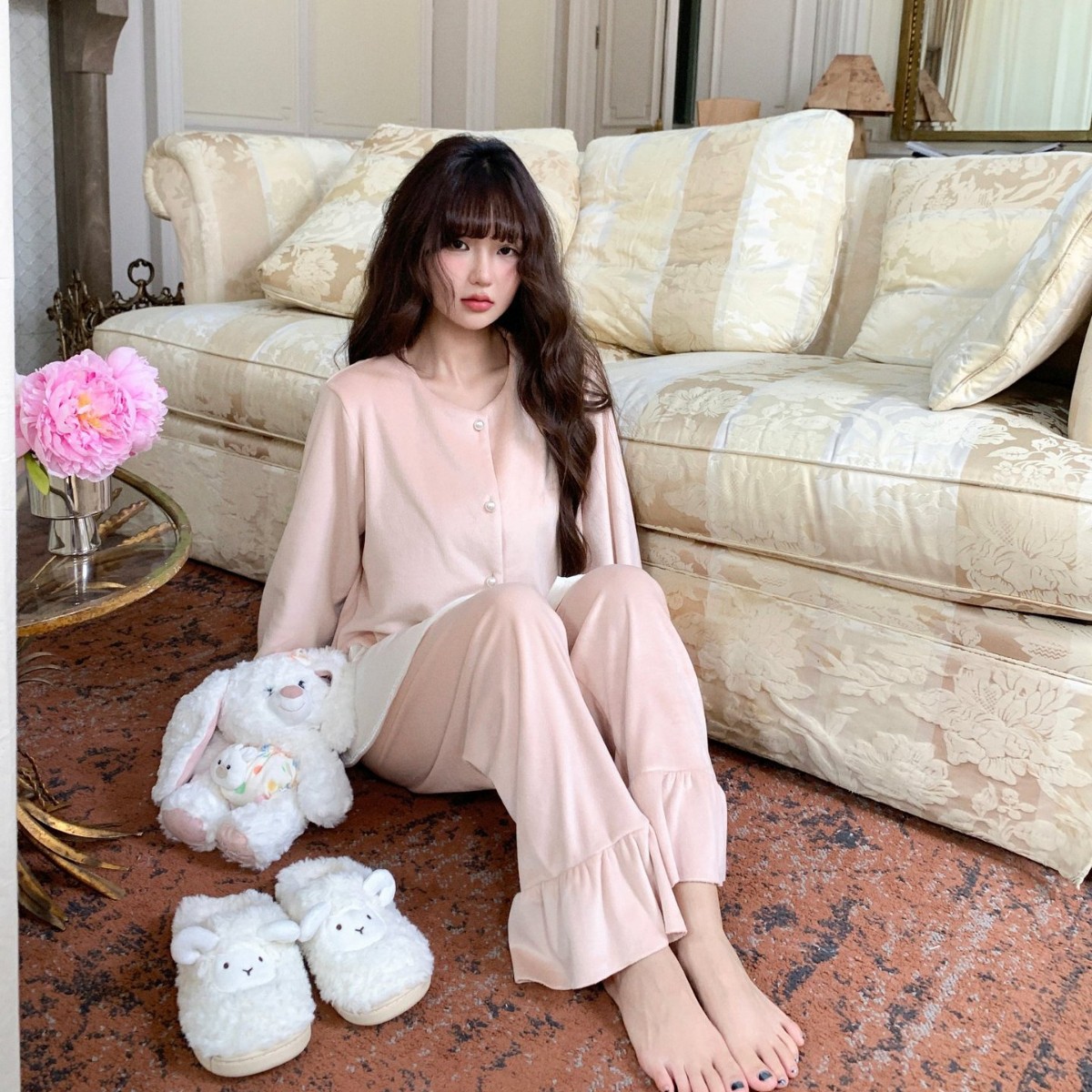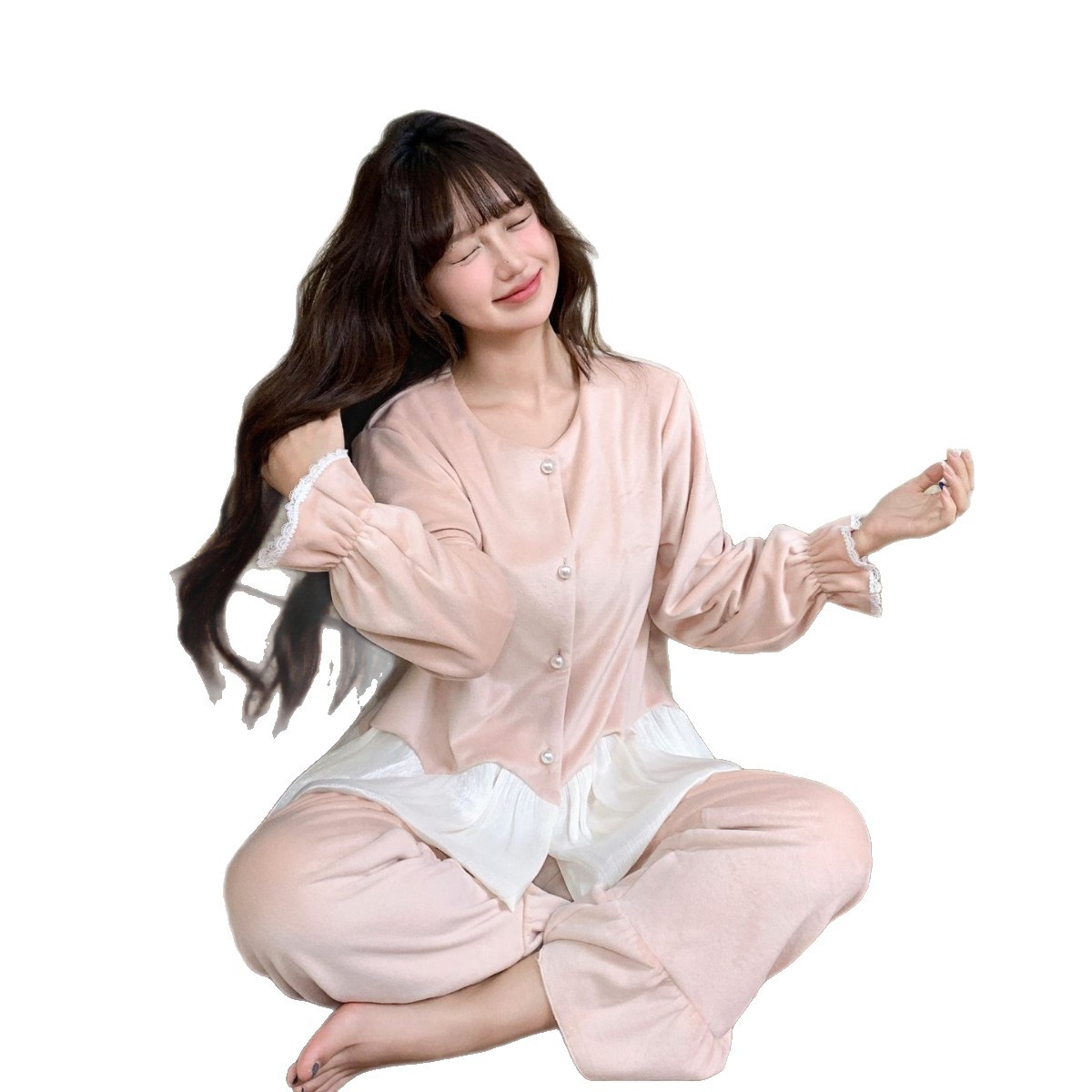 【海岛绒】秋冬纯欲风双面绒睡衣女长袖加厚保暖套装纯色网红居家