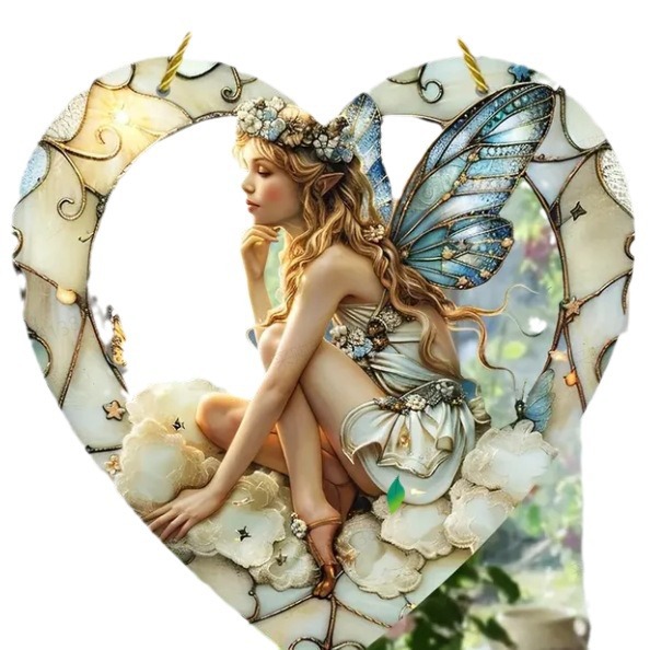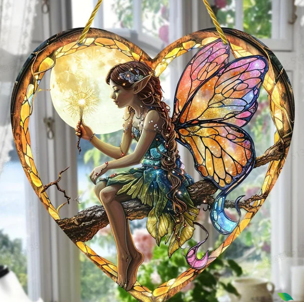 独立站新款亚克力心形精灵捕光花仙子悬挂居家农舍窗户装饰挂件