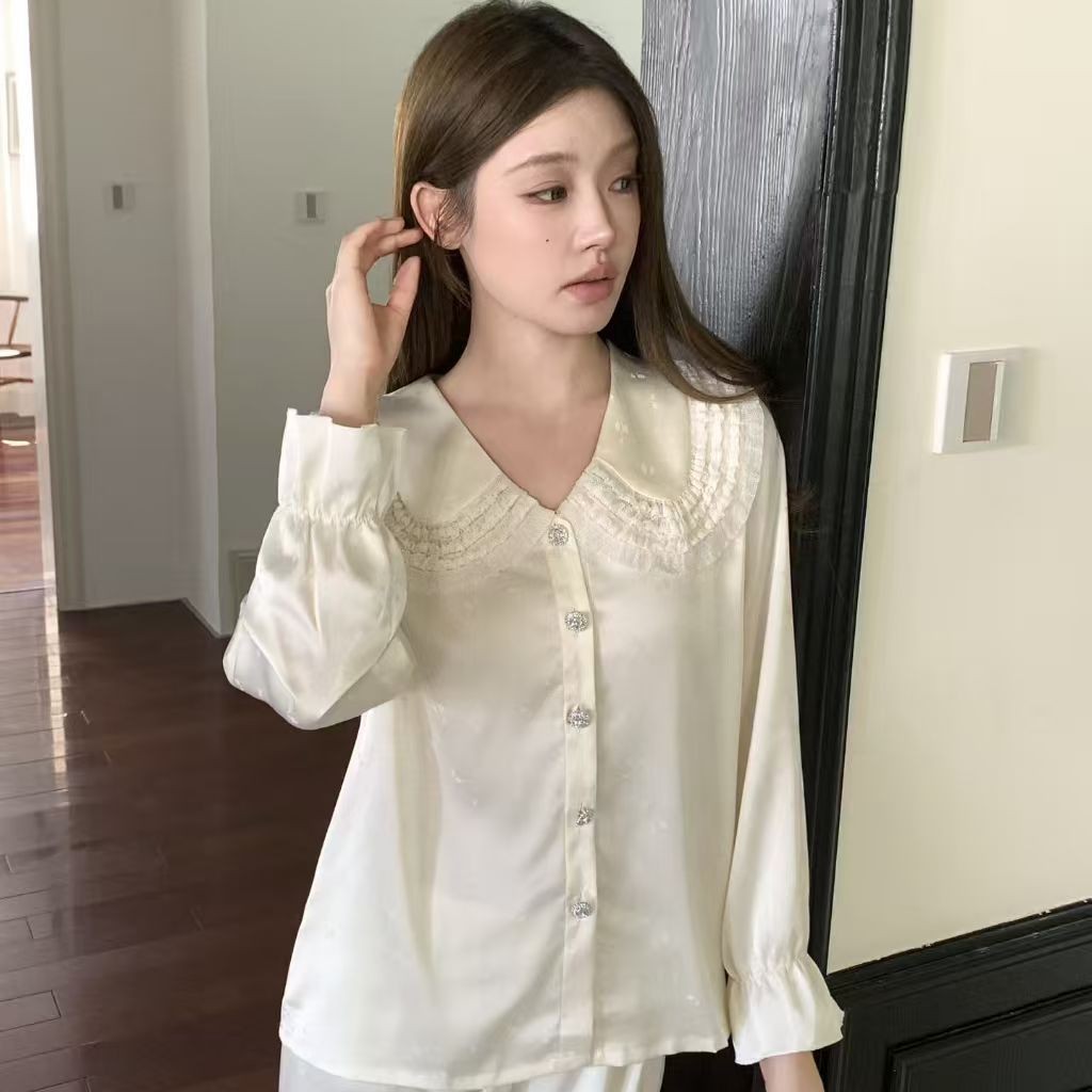 2026新冰丝睡衣女款翻领森系提花缎面少女可爱冰丝家居服工厂批发