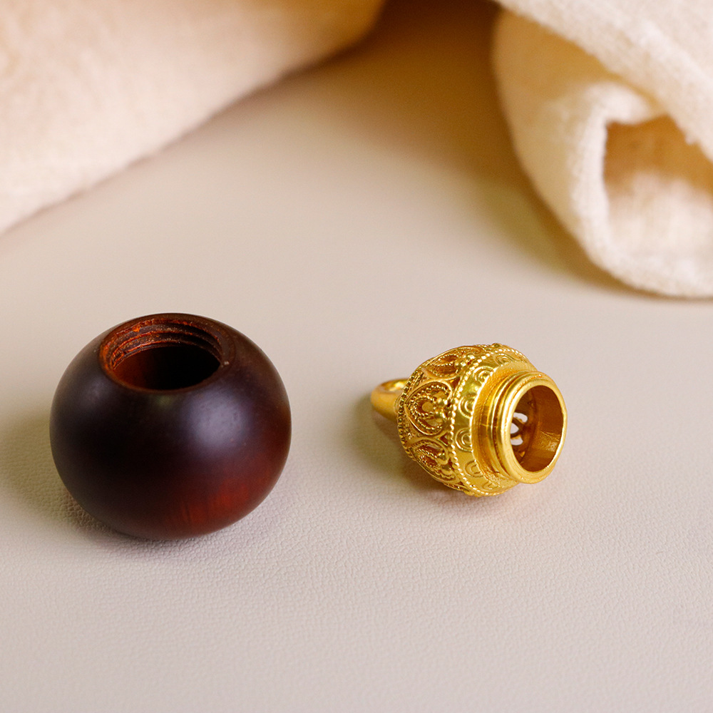 【福禄到家】紫檀木葫芦金属盖子随身香薰盒diy配件香薰钥匙扣