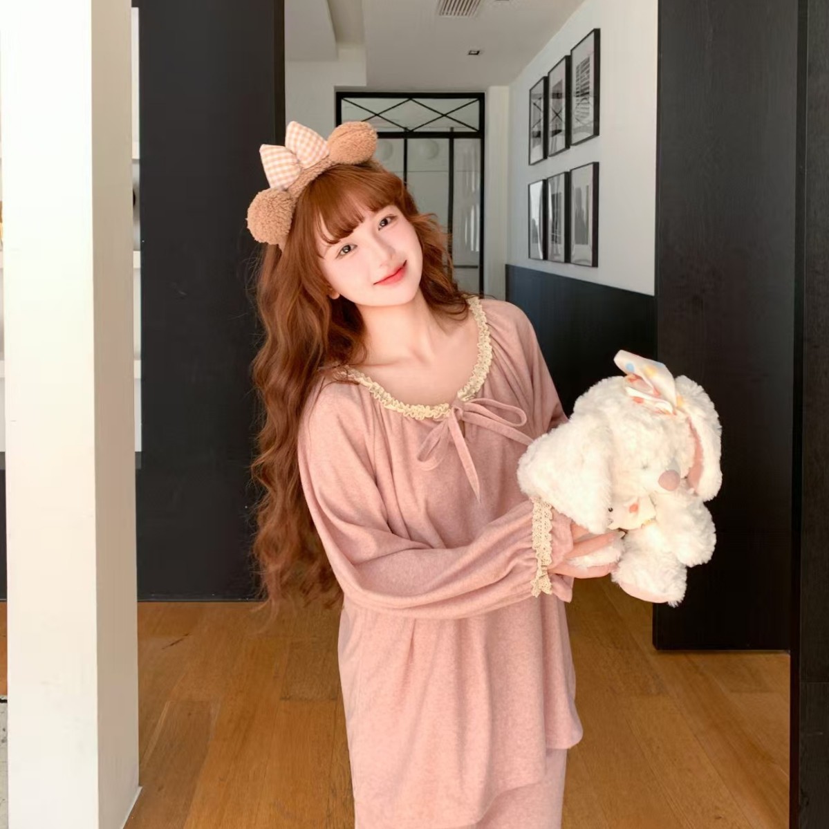 跨境毛巾绒甜美睡衣女长袖长裤睡衣抖音小红书同款家居服外贸批发