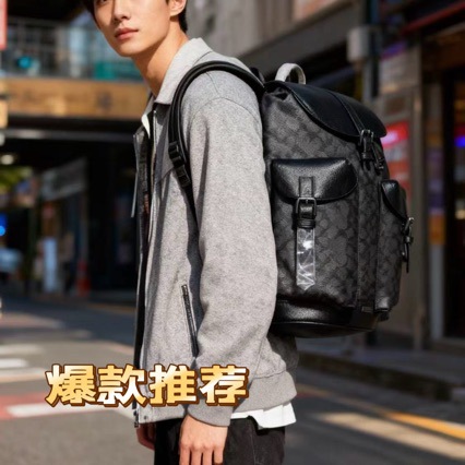 跨境包包双肩包男士时尚纯素皮革双肩背包多口袋小众百搭休闲简约