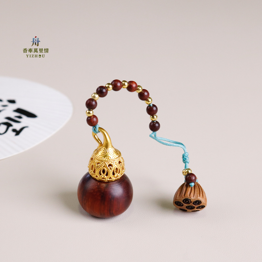紫檀木葫芦钥匙扣挂件创意木质葫芦镂空活扣香囊配饰挂件