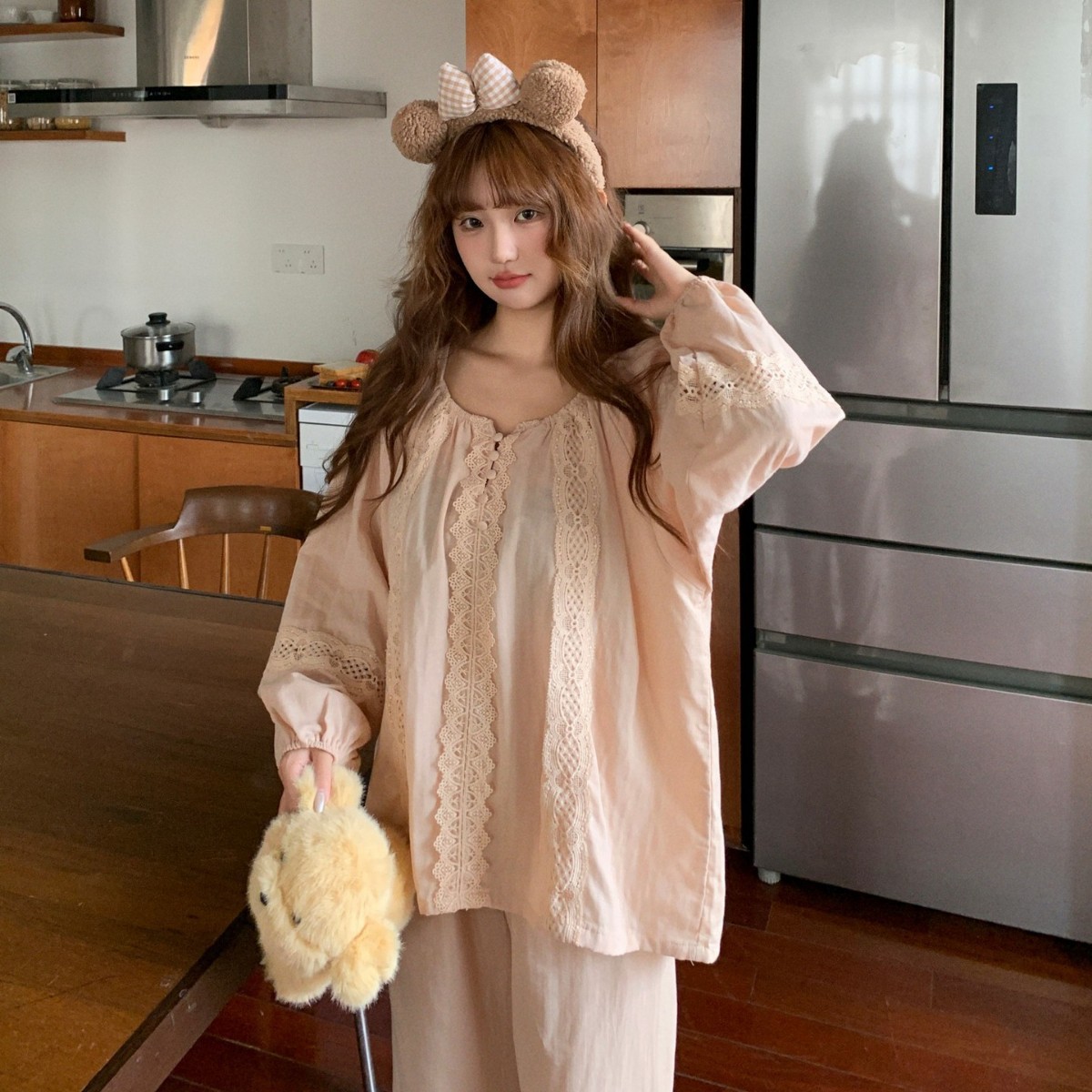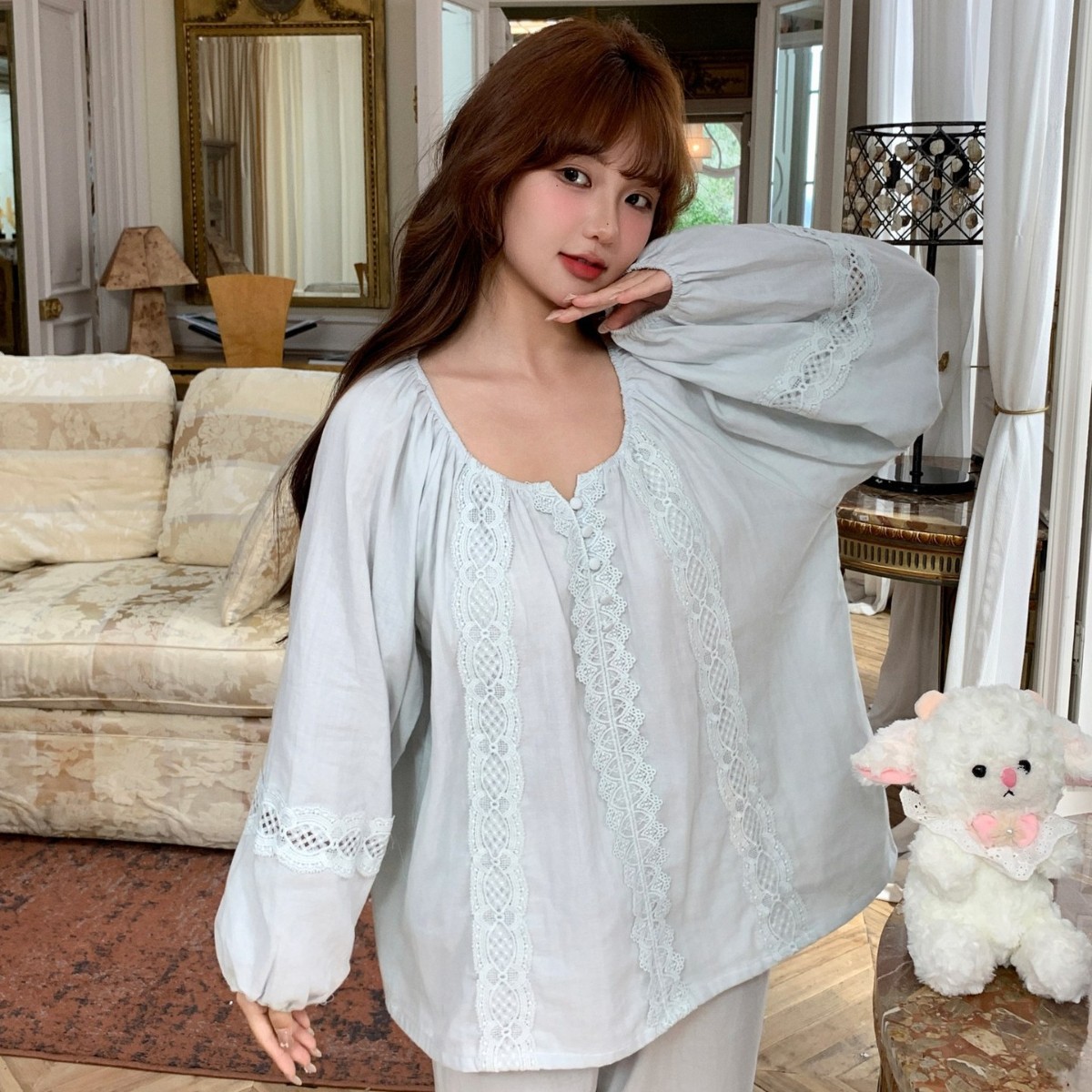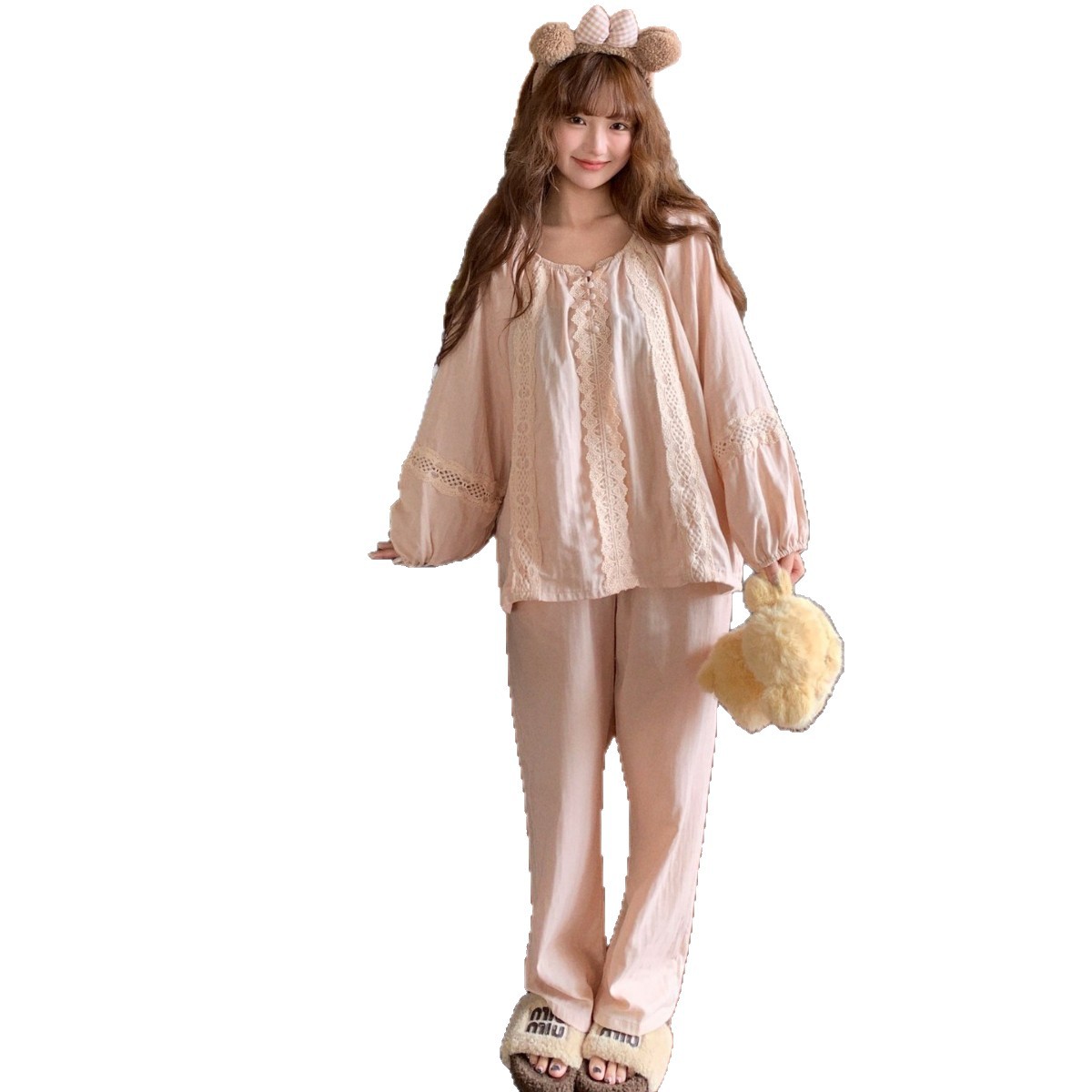 2026春季新款法式轻奢睡衣女高级感薄款纯棉双层纱单排扣家居服