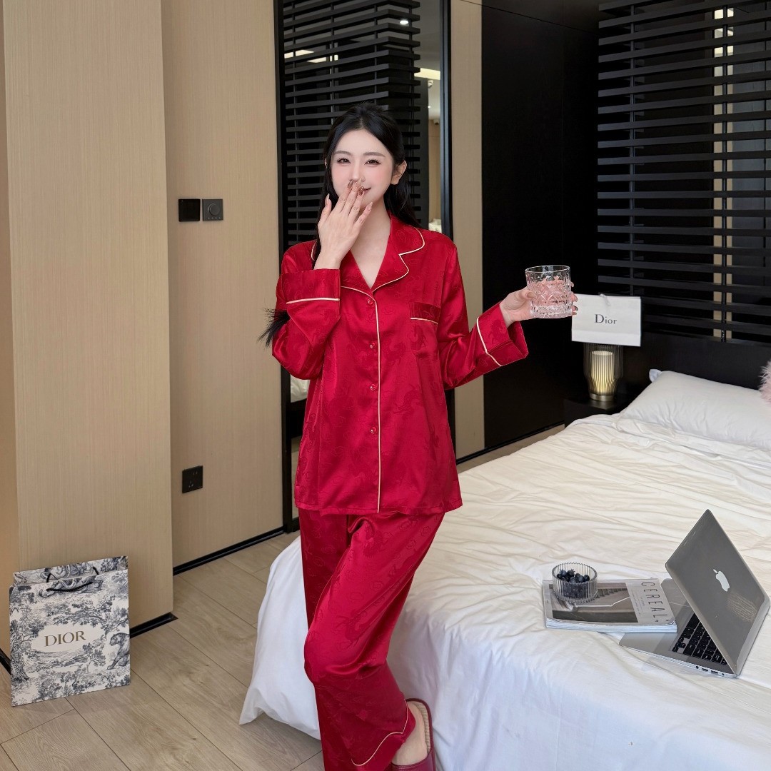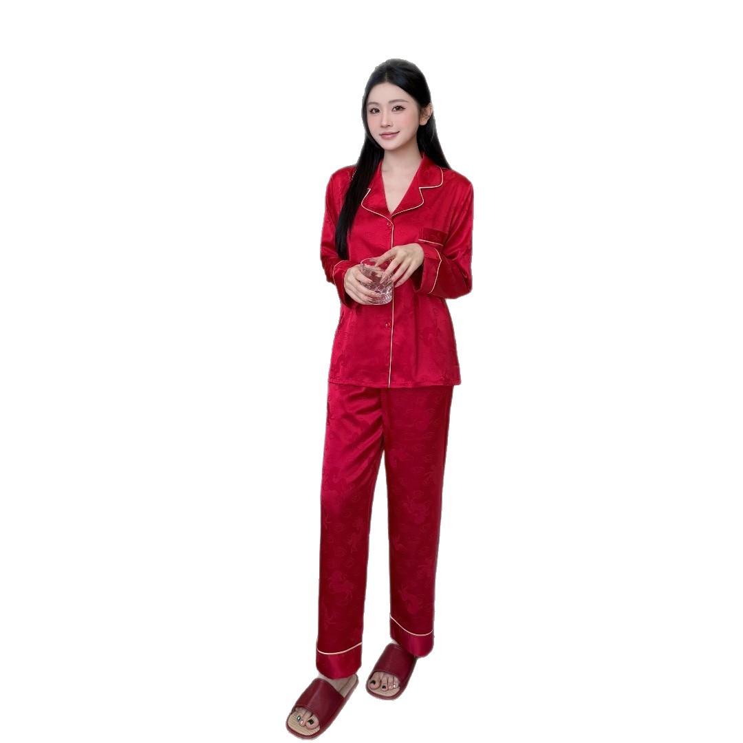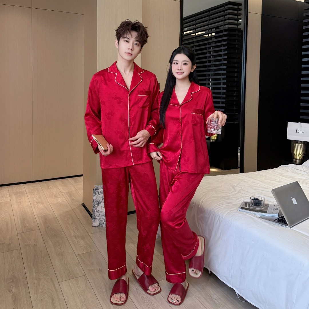 冰丝睡衣本命年新年红马年红色情侣款睡衣高级感春秋款结婚礼物