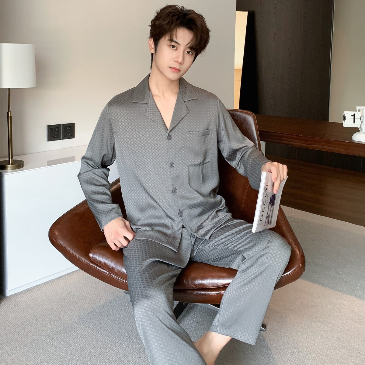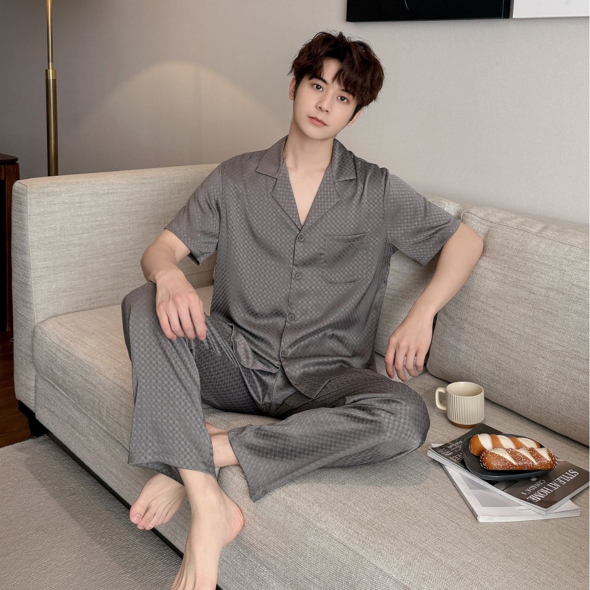 冰丝睡衣男士新春夏季长短袖款宽松高级印花家居服可外穿跨境