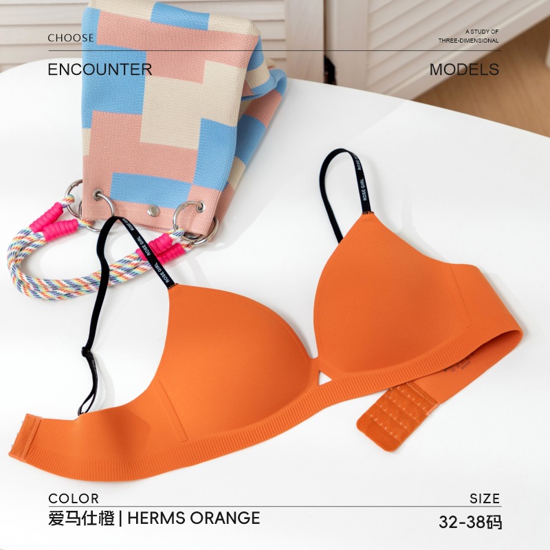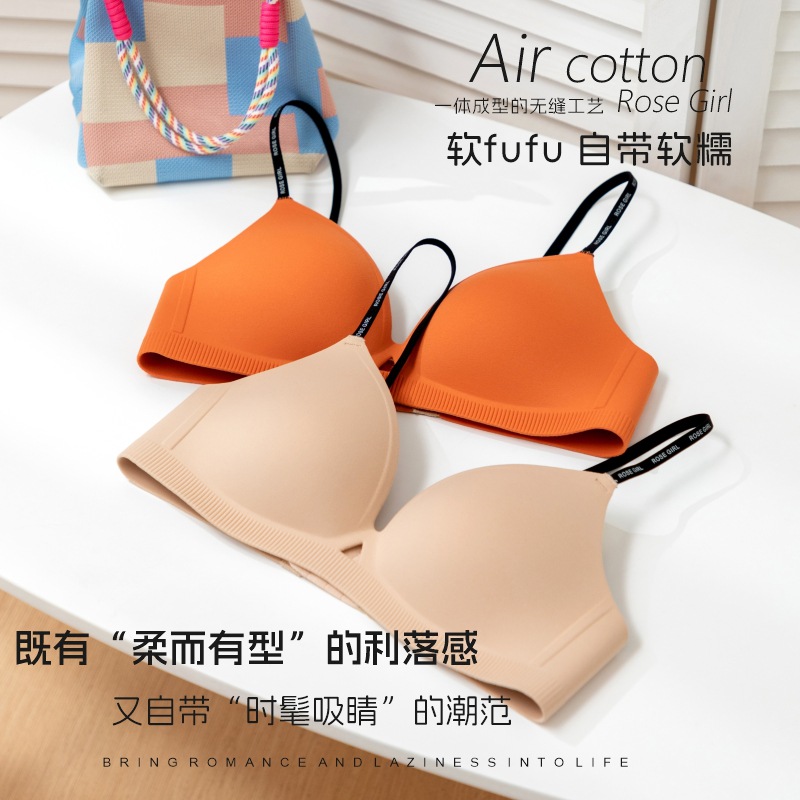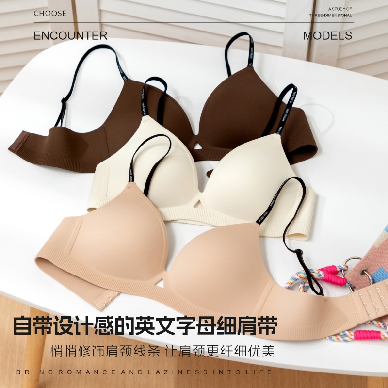 新款一体式薄款无痕无缝小胸提拉聚拢文胸字母细肩带内衣女防下垂