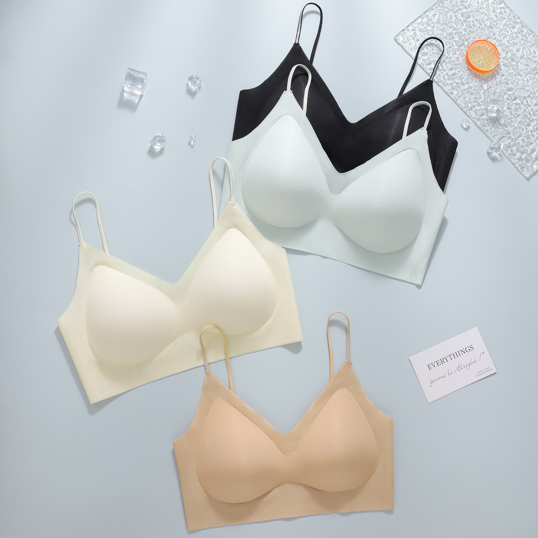 新款山茶花油细肩带贴肤提拉女士舒适无痕内衣透气固定杯吊带文胸