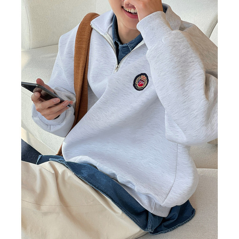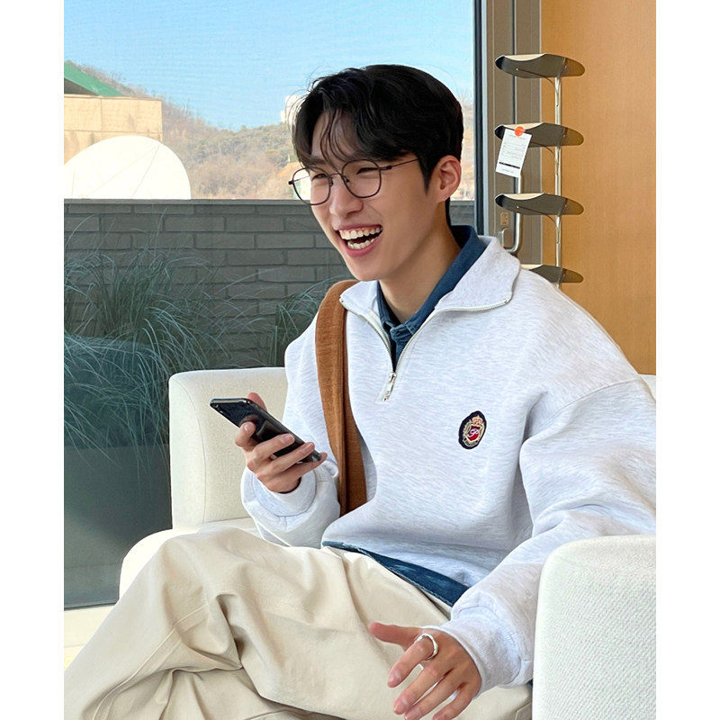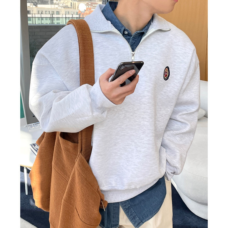 加绒卫衣男春秋季高级感半拉炼立领小众套头上衣韩版时尚潮流男装