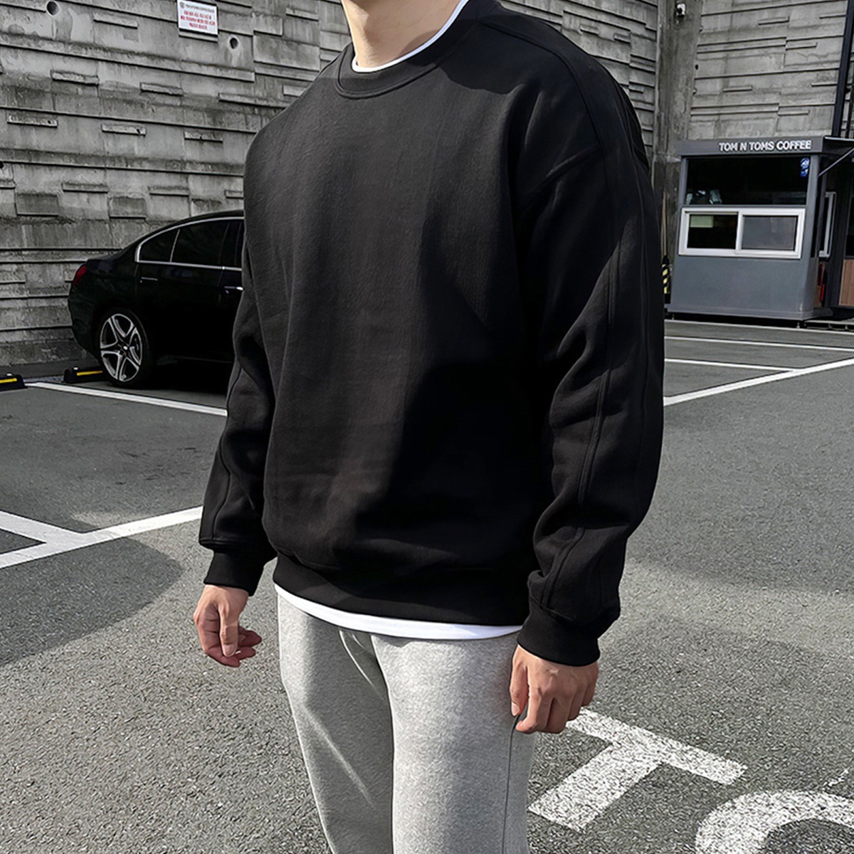 纯色简约基础款圆领卫衣男美式重磅潮流ins宽松百搭休闲长袖上衣