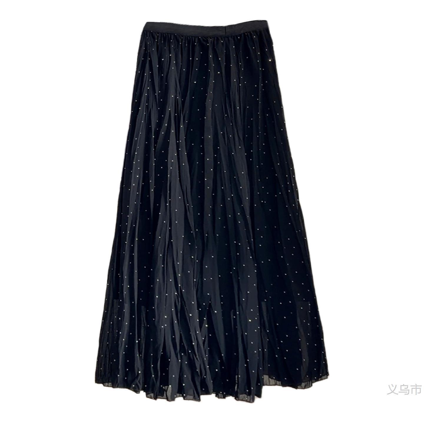 仙气飘飘烫钻百褶雪纺半身裙女2026春季遮肉显瘦A字仙女2026雅晴