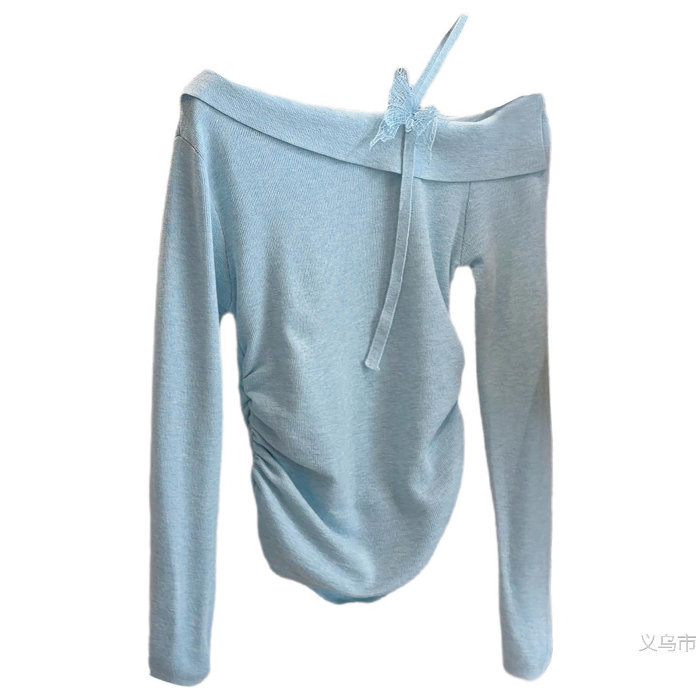 法式设计感一字肩蝴蝶长袖针织衫女2026春季新款露肩绝美2026雅晴