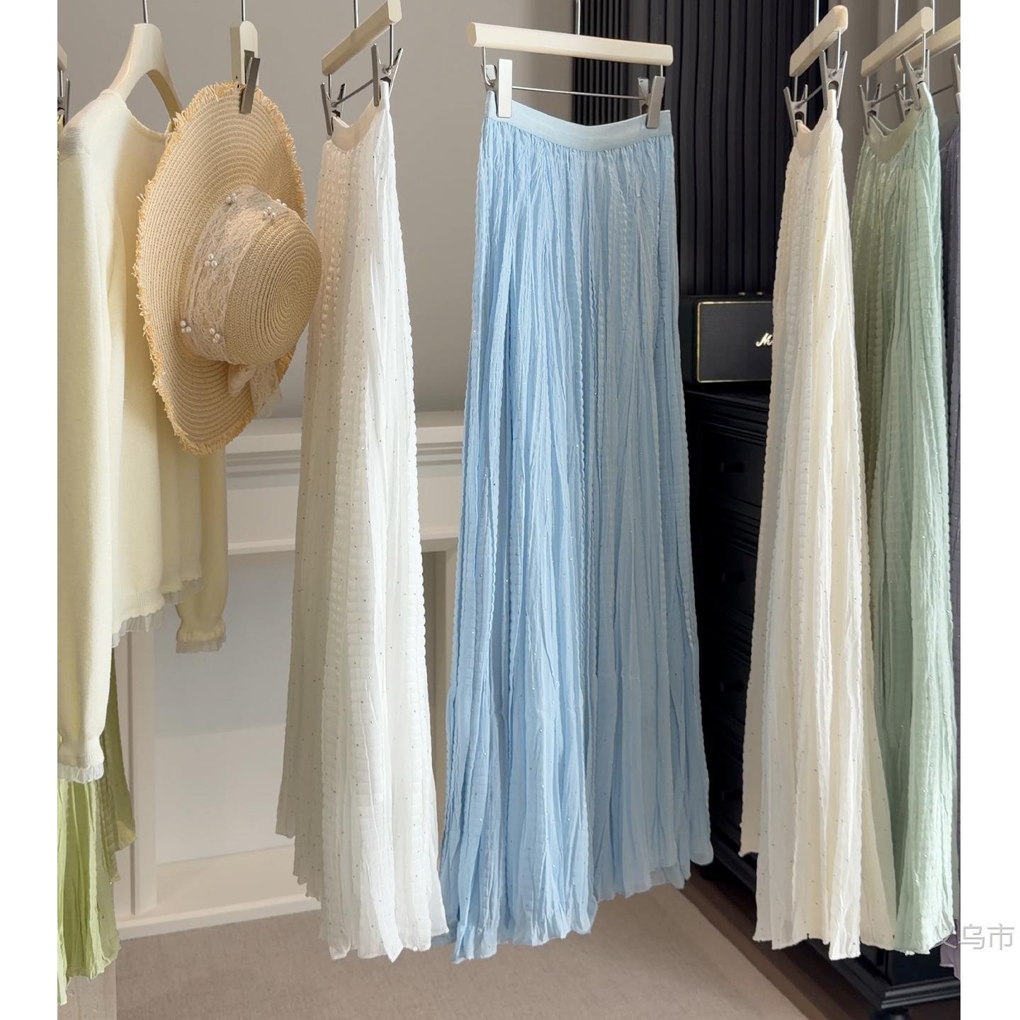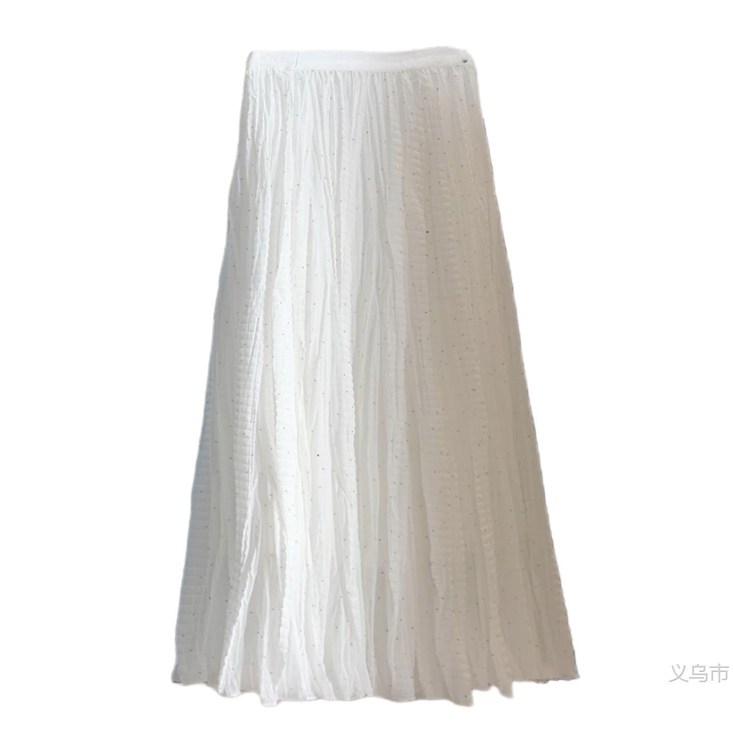 韩系纯色褶皱烫钻网纱半身裙女春季新款超仙显瘦百褶裙大2026雅晴