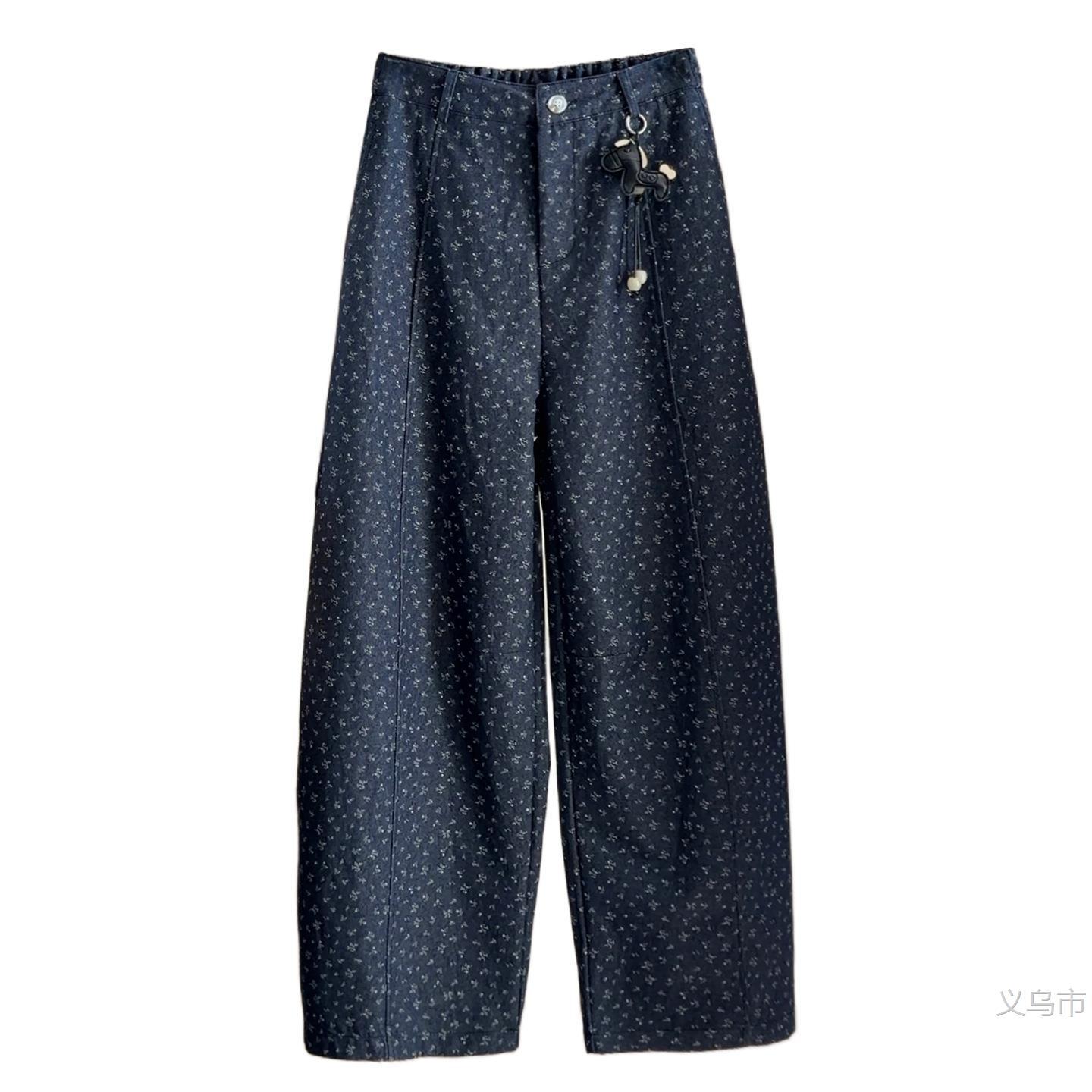 2026春季新款韩系碎花阔腿休闲裤女后松紧高腰宽松显瘦百2026雅晴