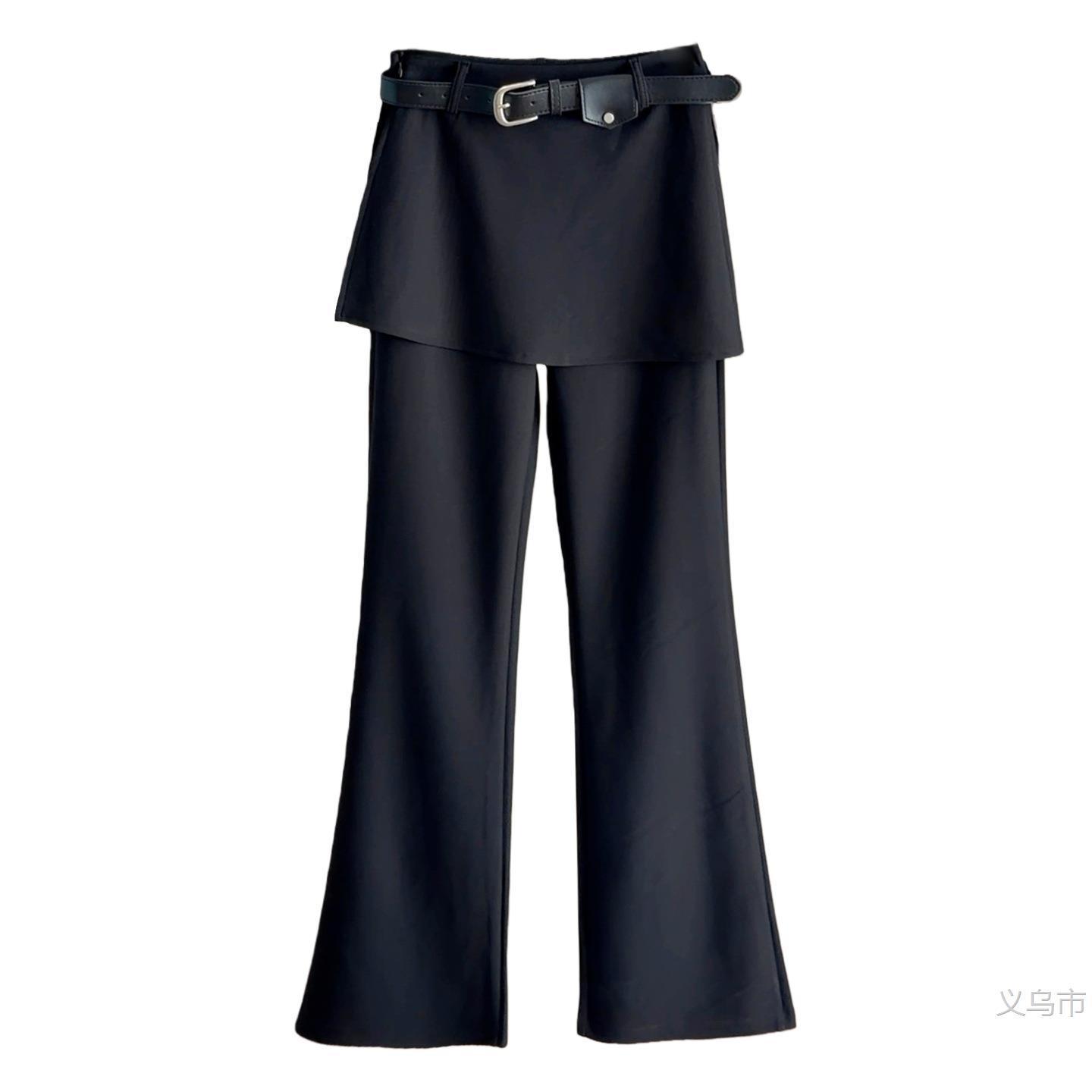 高腰弹力假两件屁帘休闲西装微喇裤女春新款垂坠显瘦百搭2026雅晴