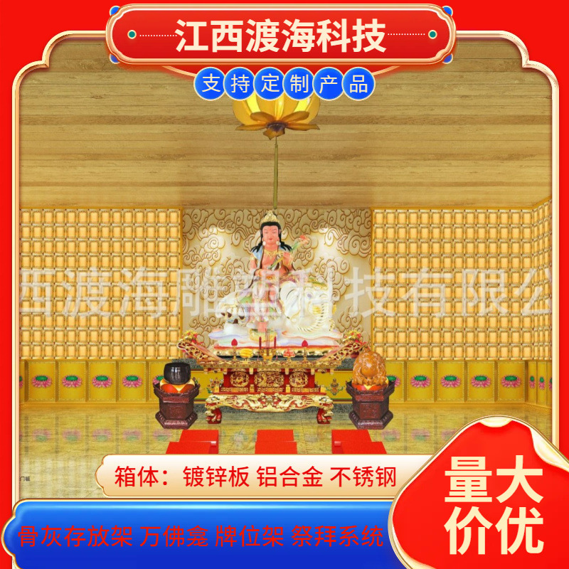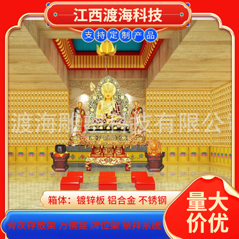 主营产品:骨灰存放架,骨灰盒寄存架,福寿架,万佛龛,牌位架,殡仪馆祭拜系统,寺院智能化管理系统、龙骨吊顶、智能骨灰寄存架