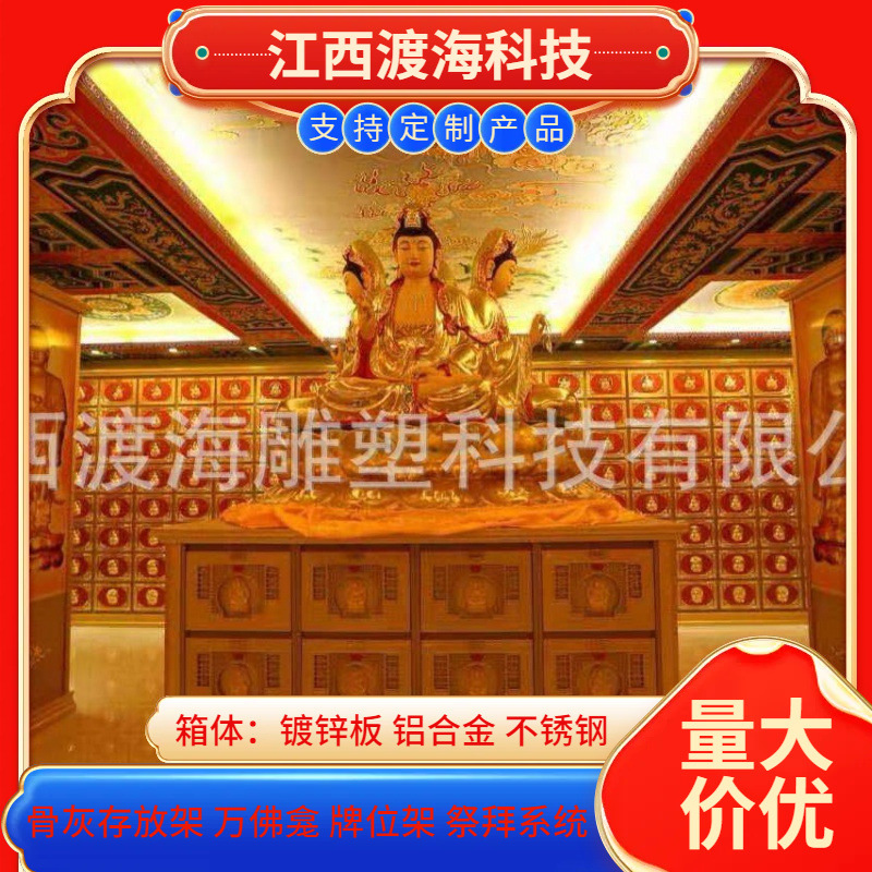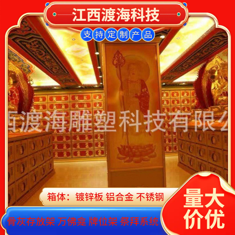 主营产品:骨灰存放架,骨灰盒寄存架,福寿架,万佛龛,牌位架,殡仪馆祭拜系统,寺院智能化管理系统、龙骨吊顶、智能骨灰寄存架