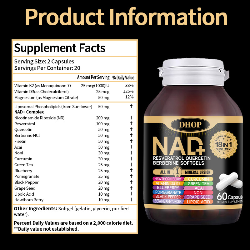 NAD白藜芦醇槲皮素小柴碱胶囊 跨境维生素k2D3烟酰胺NAD+补充剂