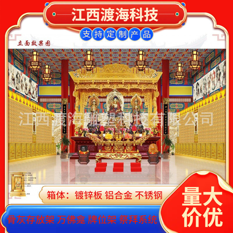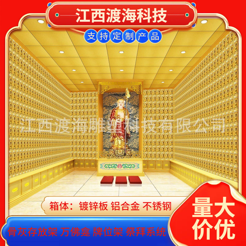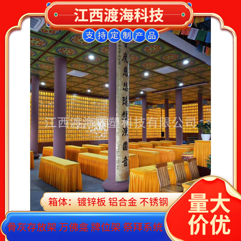 主营产品:骨灰存放架,骨灰盒寄存架,福寿架,万佛龛,牌位架,殡仪馆祭拜系统,寺院智能化管理系统、龙骨吊顶、智能骨灰寄存架