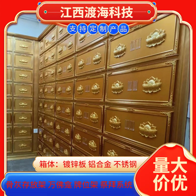 主营产品:骨灰存放架,骨灰盒寄存架,福寿架,万佛龛,牌位架,殡仪馆祭拜系统,寺院智能化管理系统、龙骨吊顶、智能骨灰寄存架