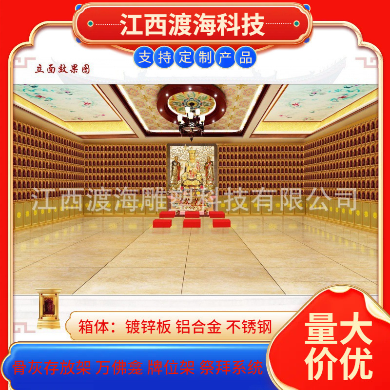 主营产品:骨灰存放架,骨灰盒寄存架,福寿架,万佛龛,牌位架,殡仪馆祭拜系统,寺院智能化管理系统、龙骨吊顶、智能骨灰寄存架