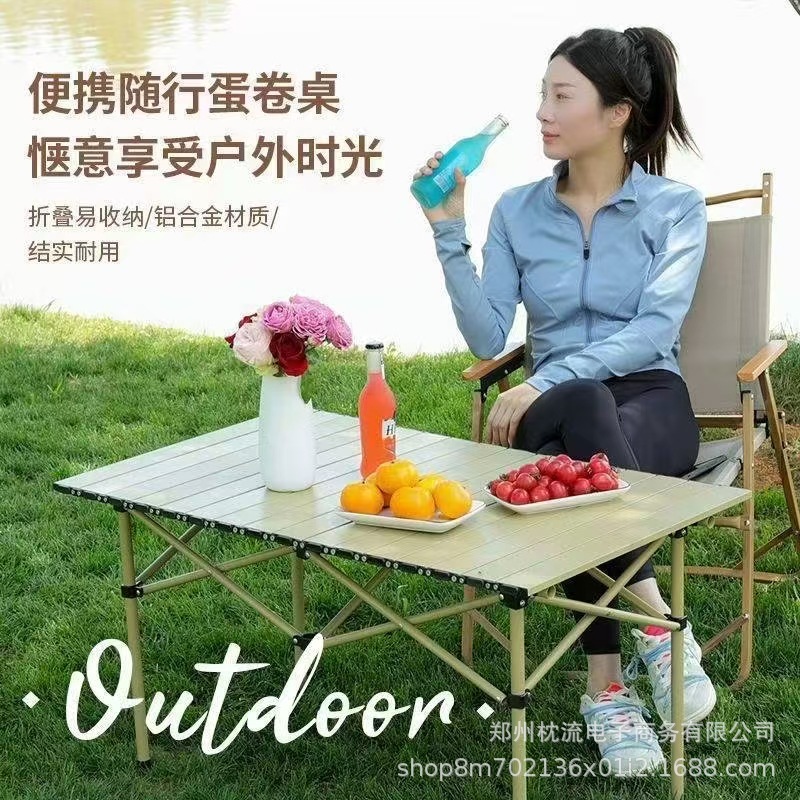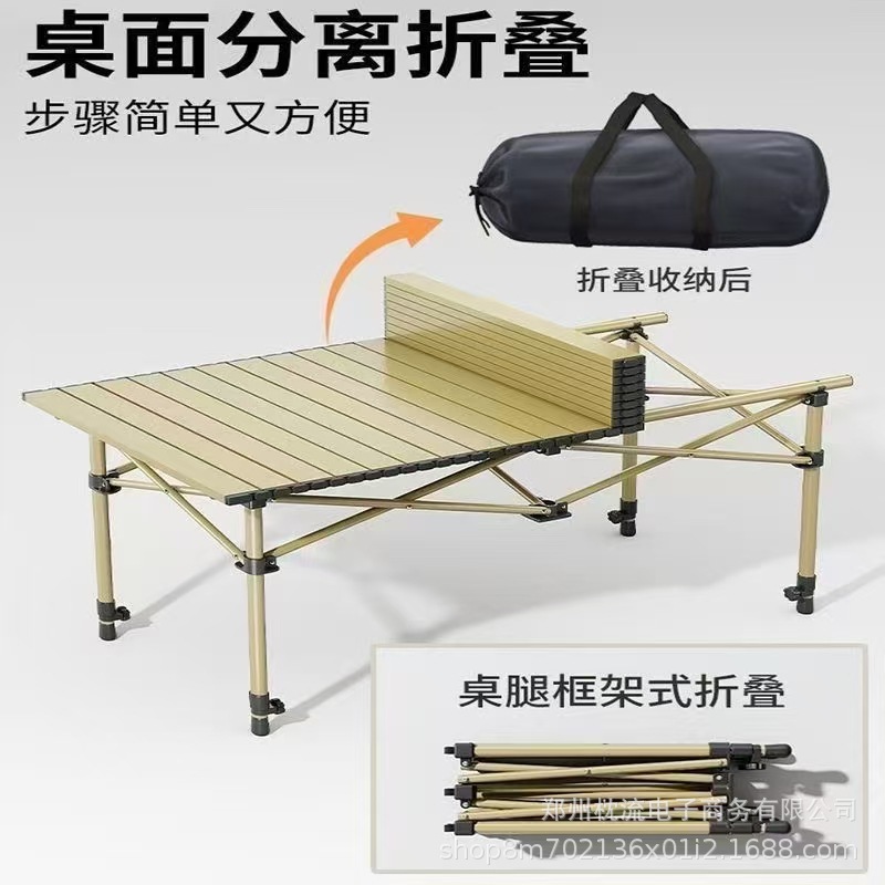 户外便携折叠桌铝合金蛋卷桌95cm加长款摆摊露营野餐桌可折叠收纳