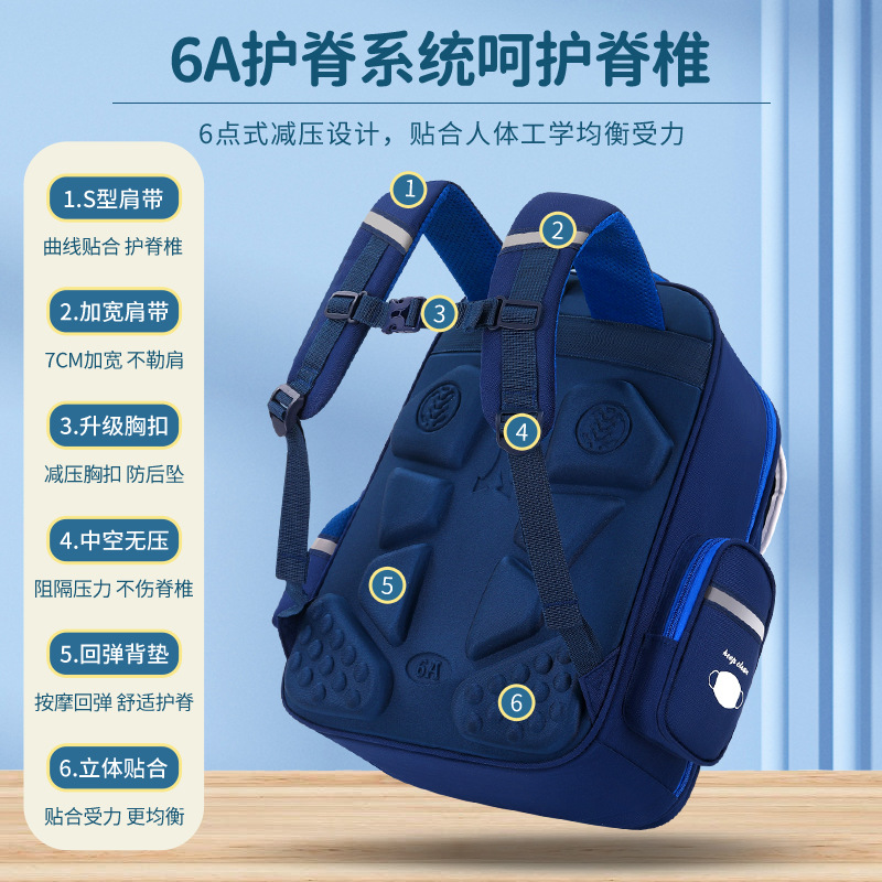 新款1-6年级护脊减负男女童超轻便儿童书包小学生时尚双肩背包