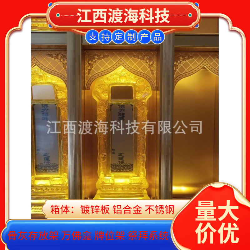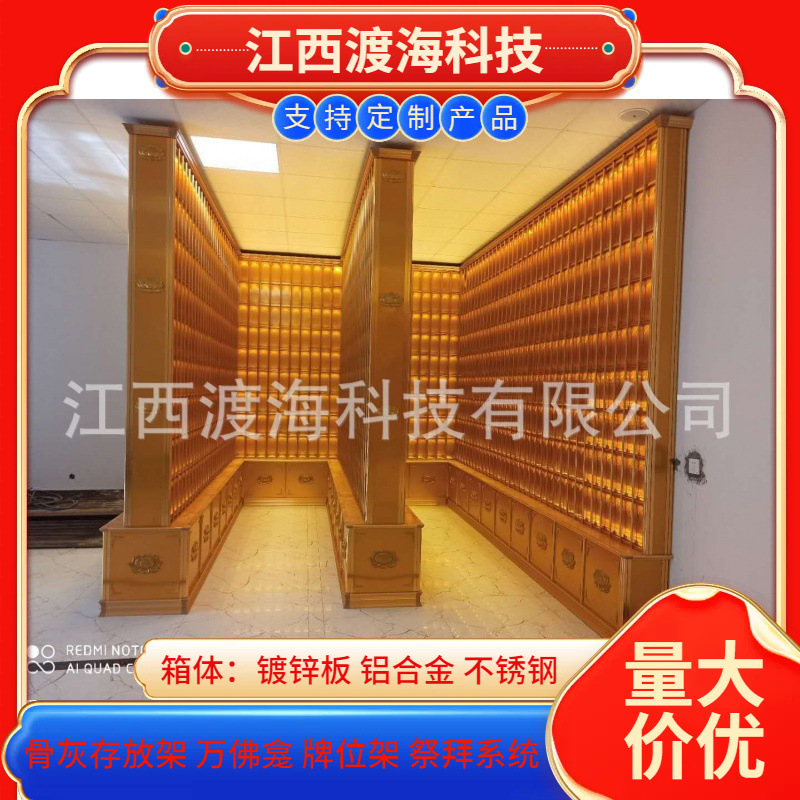 主营产品:骨灰存放架,骨灰盒寄存架,福寿架,万佛龛,牌位架,殡仪馆祭拜系统,寺院智能化管理系统、龙骨吊顶、智能骨灰寄存架
